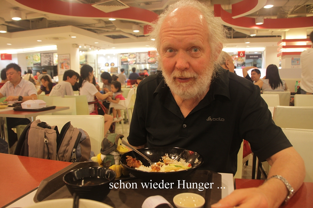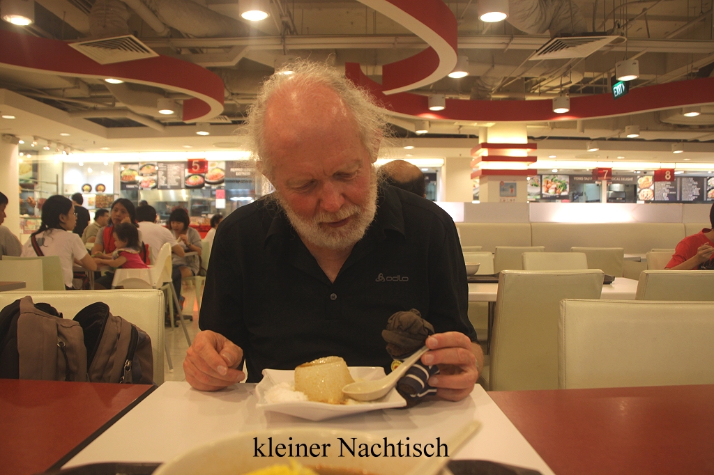 Während ich duschte, holte Tomoko, da sie wieder Appetit hatte, sich etwas zu essen, einen Vegetable Pie. Solange wir das kühle Zimmer noch hatten, nutzten wir es noch aus indem wir Fotos auf dem Fernseher schauten. Das Fernsehen hatte einen Einschub für SD-Speicherkarten, so dass ich nur Fotos auf eine solche Karte kopieren musste, um sie dann in wirklich guter Qualität auf dem Bildschirm anzuschauen. Wir packten alle unsere Sachen in die Koffer und gingen gegen 11.45 Uhr zur Rezeption zum Auschecken. Die Koffer konnten wir unten beim Bell-Captain deponieren bis zur Abreise am Abend zum Flughafen. Da wir beide wieder Hunger hatten, gingen wir in die Food Mall und aßen eine Kleinigkeit. |