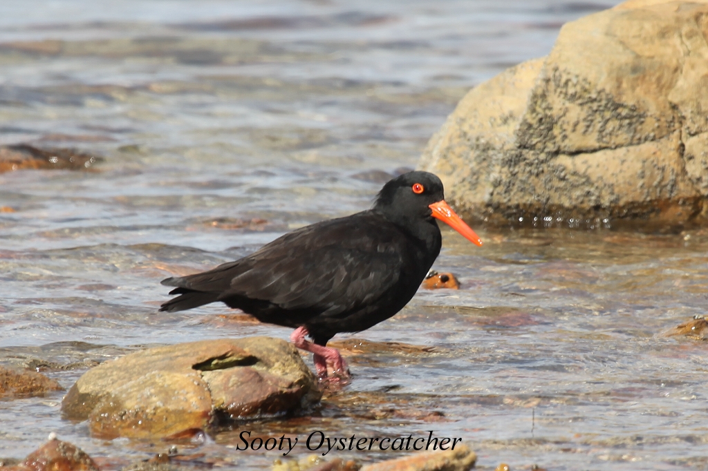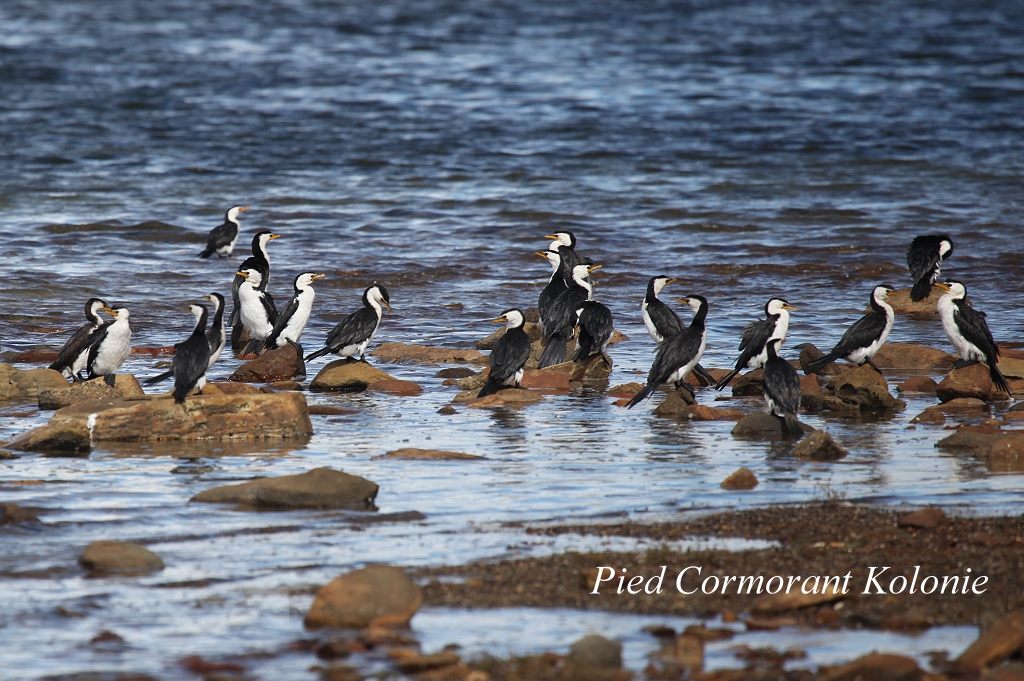 Wir sahen Möwen, mehrere schwarze Schwäne, eine Kormoran-Kolonie, 2 Pied Oystercatcher, einen Sooty Oystercatcher sowie einige Pelikane. |