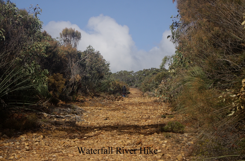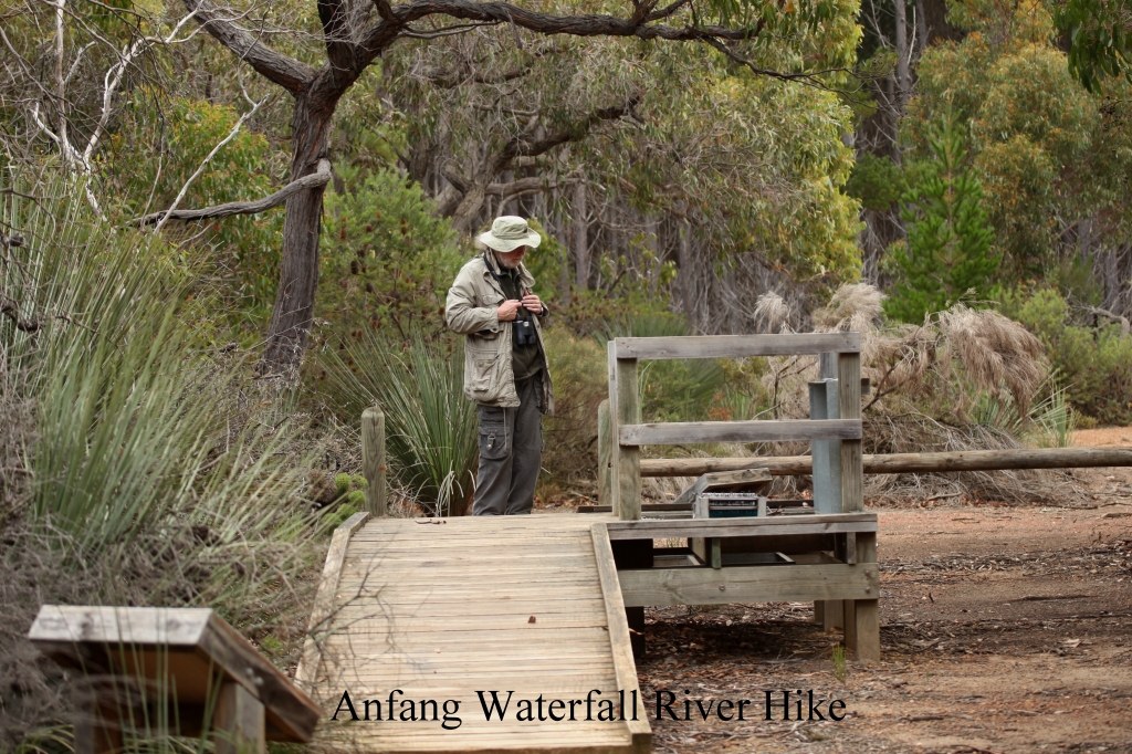 Gegen 9.00 Uhr waren wir abfahrbereit. Heute wollten wir ein Gebiet besuchen im Norden der Insel, wo der sehr seltene Glossy-black Cockatoo brüten soll. Der Ort heißt Western River und liegt am Ende einer Sandstraße mitten in der Wildnis, etwa 38 km entfernt. Mir fiel ein, dass ich vergessen hatte mein Medikament zu nehmen. Also hielt ich an. Tomoko erschreckte mich mit einem Schrei, krabbelte doch eine kleine braune Spinne über ihren Arm. Normalerweise hat sie keine Angst, aber in Australien weiß man nie, ob eine Spinne giftig ist oder nicht. Gibt es doch hier z.B. die Red-backed Spider, deren Biss in 20 min zum Tode führen kann. Tomoko bugsierte die Spinne vorsichtig nach draußen. Wir fuhren weiter. Um 9.40 Uhr hüpfte uns plötzlich ein Känguru ganz dicht vors Auto. Ich konnte so gerade noch bremsen. Gott sei Dank fuhr ich nicht sehr schnell. Fünf Minuten später sahen wir zwei Adler auf einer Wiese sitzen, die aber von mehreren Australian Magpies weggejagt wurden, so dass keine Zeit mehr blieb für ein Foto. Gegen 10.00 Uhr erreichten wir das Ende der Straße. Wir fuhren ein kleines Stück zurück bis zu einem Punkt, wo ein Wanderweg zu einem Wasserfall begann (Waterfall River Hike). |