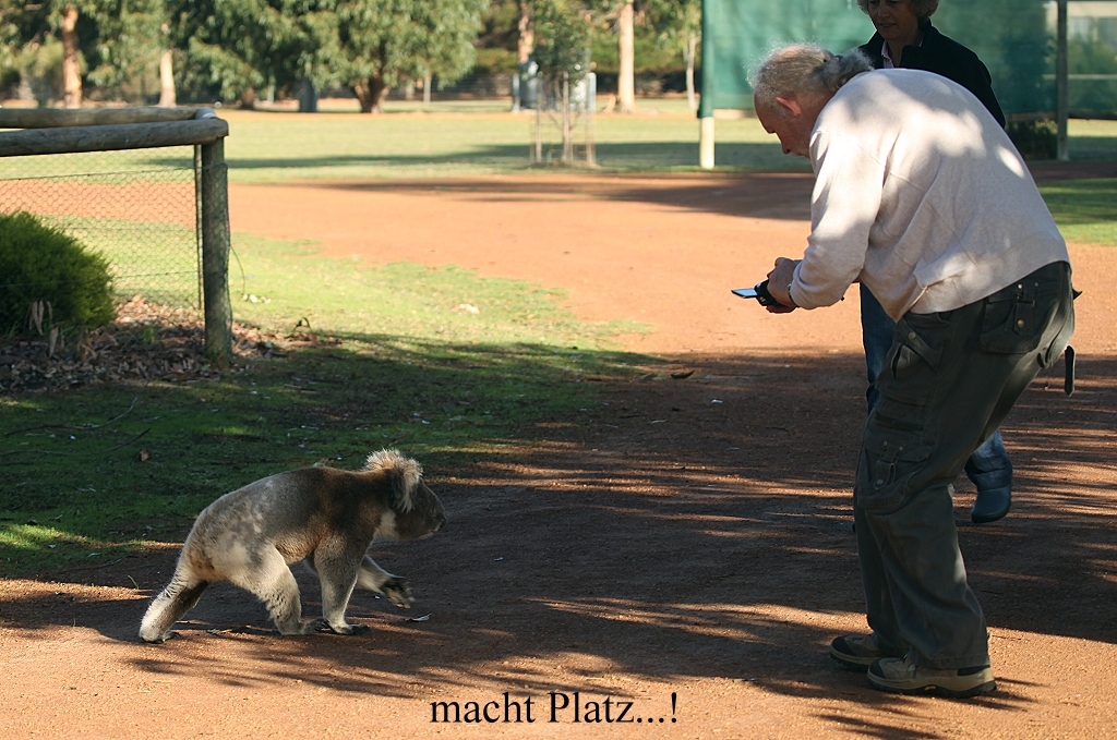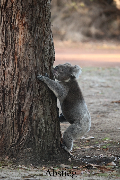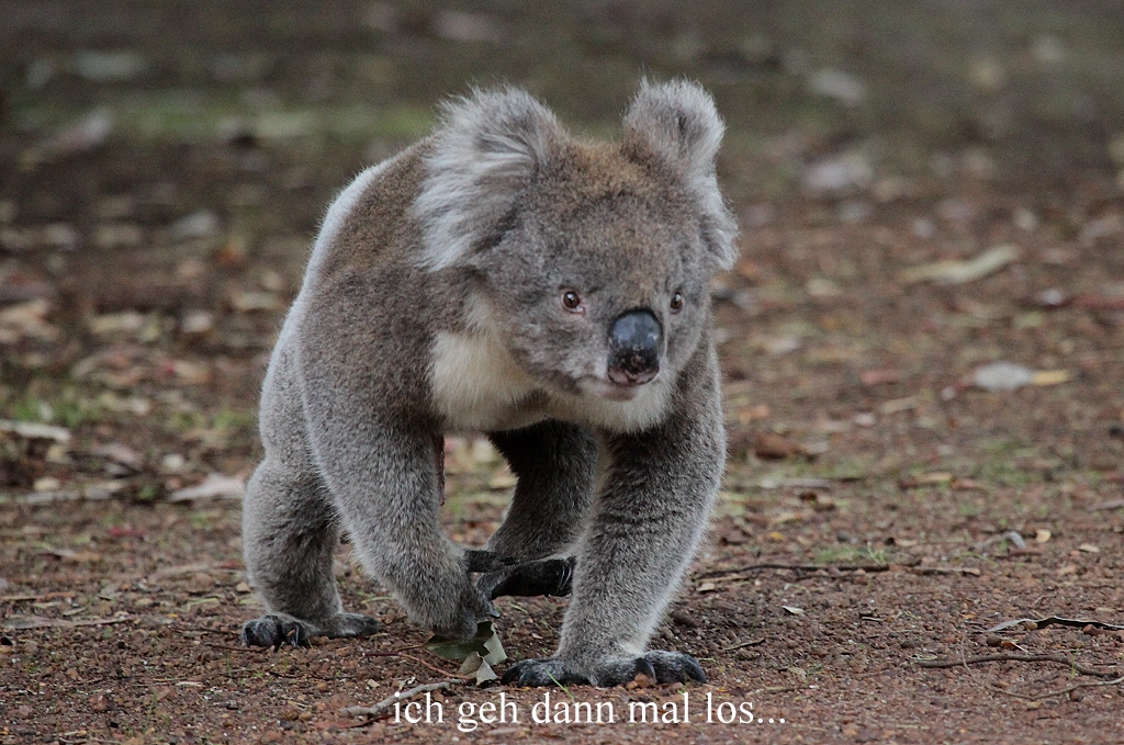 Einen Koala am Boden hatten wir noch nie gesehen. Tomoko suchte die Videokamera, doch damit war ich ja gerade unterwegs, so dass sie leider diese Gelegenheit verpasste.