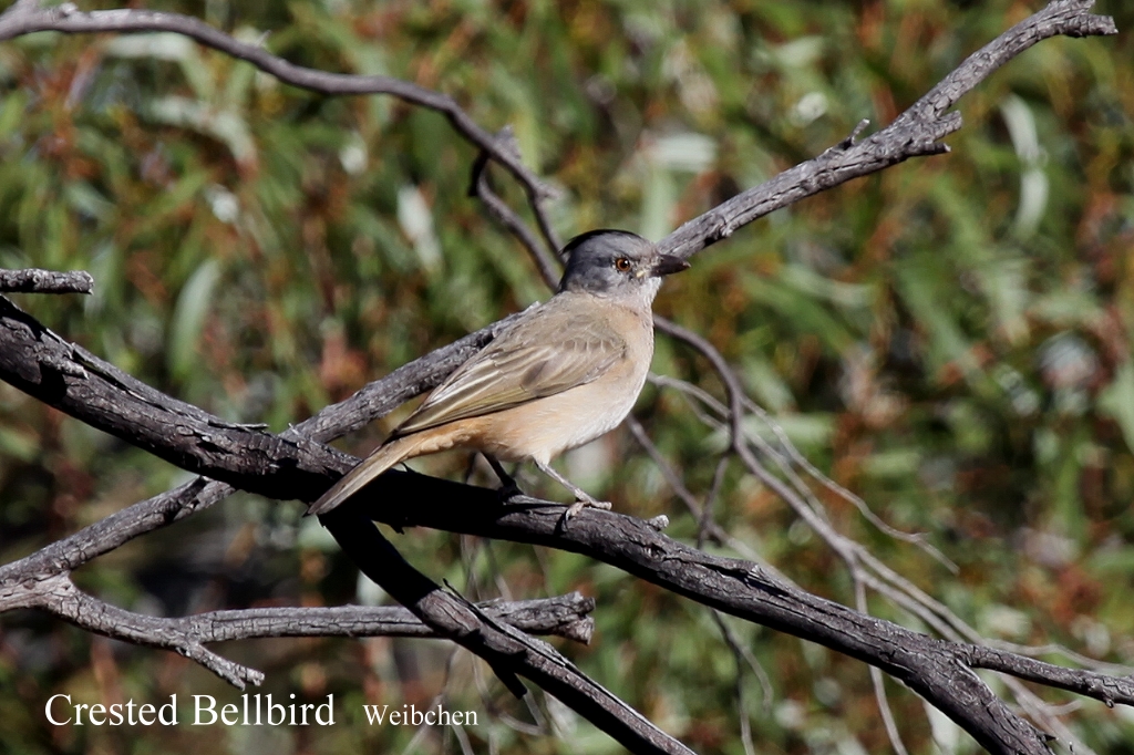 Crested Bellbird (f)) und Chestnut-rumped Thornbill. |