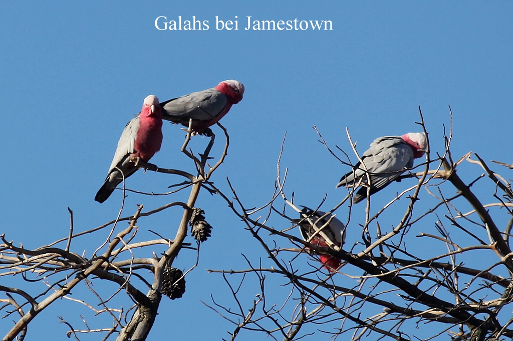 Beim Visitor-Center machten wir nochmals kurz halt. Zwei große hellrosa Papageien flogen in einiger Entfernung vorbei. Bevor ich jedoch anhalten konnte und Tomoko ein Foto machen konnte, waren sie leider wieder verschwunden. Höchstwahrscheinlich handelte es sich um die seltene Art "Major Mitchell's Cockatoo".