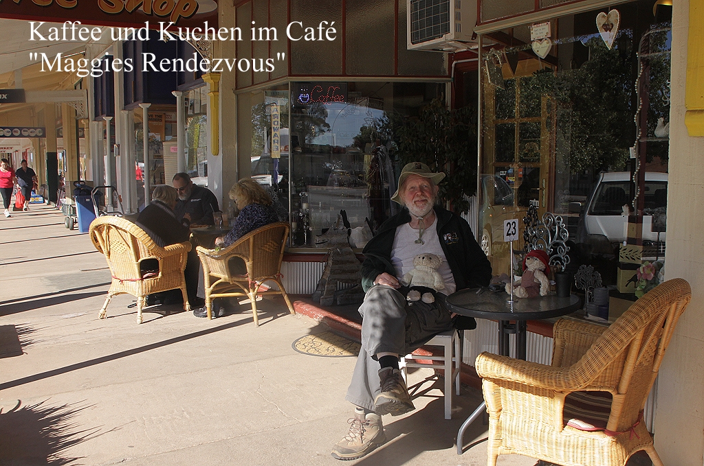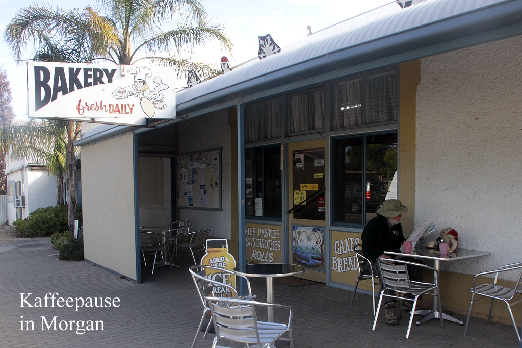 Um 13.15 Uhr erreichten wir den kleinen Ort Morgan. In einer kleinen Bäckerei machten wir für eine halbe Stunde Pause bei Kaffee und Kuchen. |