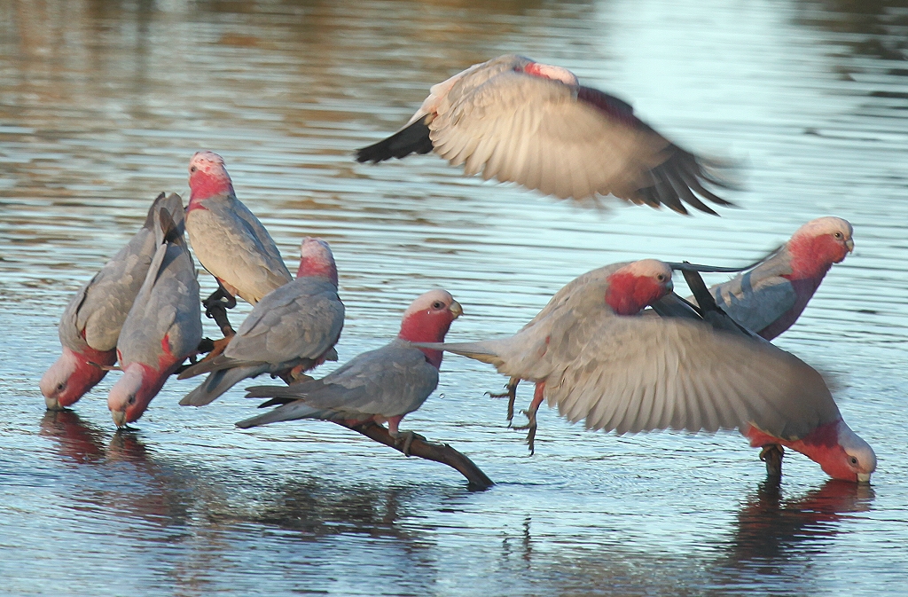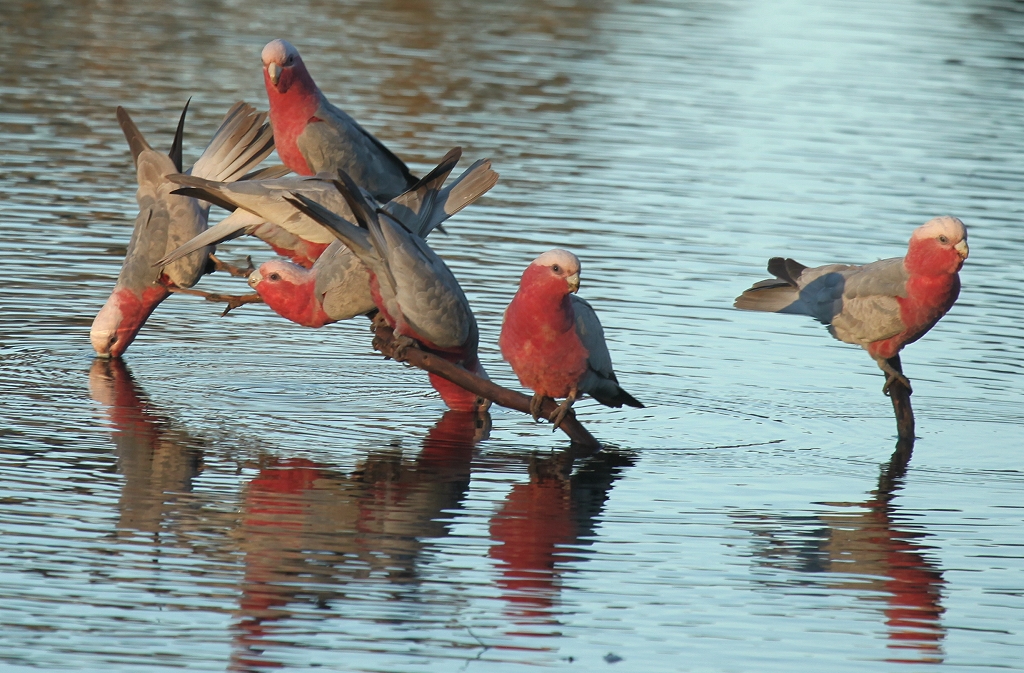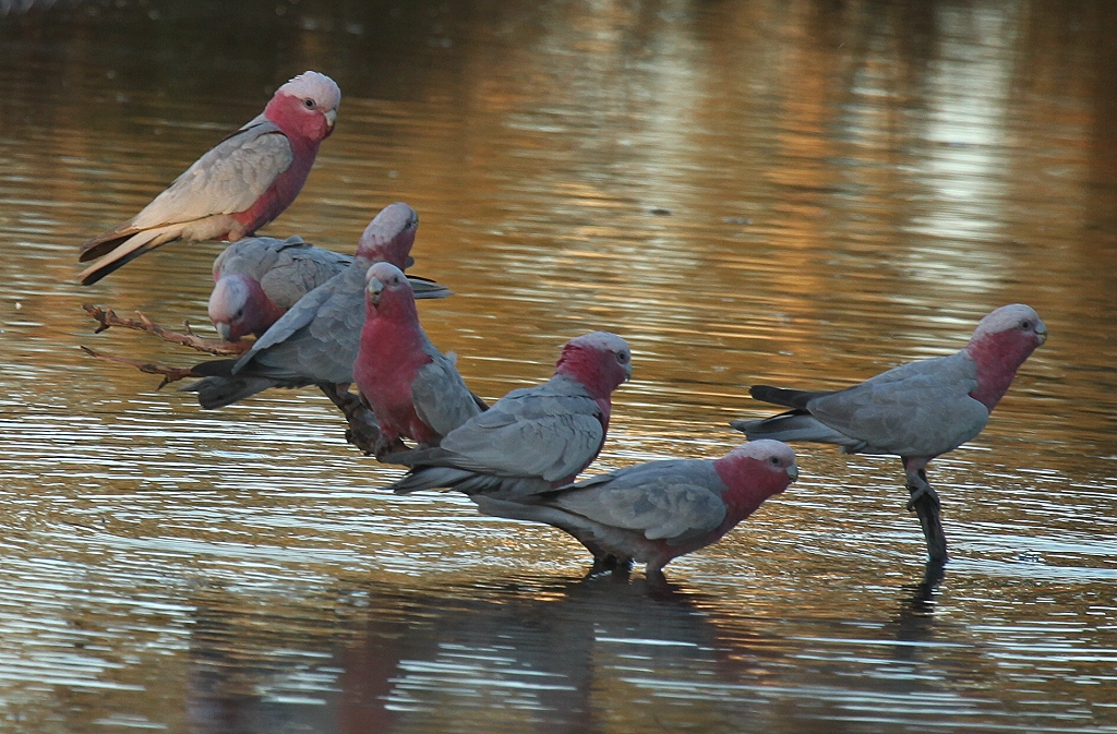 Unser Urlaub entwickelt sich langsam zu einer Art Überlebenskampf, zeigte doch das Außenthermometer heute Morgen nur 1° C an ! Immerhin waren es drinnen 6°, was allerdings auch nicht sehr viel ist. Während der Nacht hatten wir aber nicht in unseren Schlafsäcken gefroren dank unserer diversen Kleidungsstücke, die wir uns zusätzlich zu unseren normalen Schlafklamotten angezogen hatten. Kurz vor 7.00 Uhr standen wir auf und machten Frühstück, natürlich mit Kaffee kochen im Auto. Leider passierte ein kleines Missgeschick. Ich hatte meine Kaffeetasse auf dem Kocher platziert. Tomoko stieß leicht daran, die Tasse kippte um und der schöne heiße Kaffee floss über den Kocher und schwappte überall hin. Na ja, es gibt Schlimmeres… Ganz in der Nähe entdeckte Tomoko einen Vogel am Boden, einen Chestnut Quail-thrush. Um 8.20 Uhr fuhren wir mal zu unserem Hide in der Nähe. Der Himmel war wolkenlos und die gerade aufgegangene Morgensonne wärmte uns mit ihren ersten zarten Strahlen. Gleich nach unserer Abfahrt entdeckte Tomoko einen Papagei, einen Mulga. hoch in einem Baum sitzend. Leider stand die Sonne etwas ungünstig für ein gutes Foto. Von 8.40 - 9.25 Uhr blieben wir im Hide sitzen und beobachteten, was sich an Vögeln so zeigte. Etliche Currawongs flogen vorsichtig heran, sieben von ihnen tranken Wasser an der dort bereitgestellten Tränke. Die Vögel sind wirklich äußerst scheu, bei der kleinsten Bewegung oder Geräusch unsererseits flüchteten sie. 2 Australian Magpies kamen heran, tranken aber nicht. Tomoko hatte bei der Ankunft noch einen Common Bronzewing gesehen, der sogar gebadet hatte, brrrr…. |