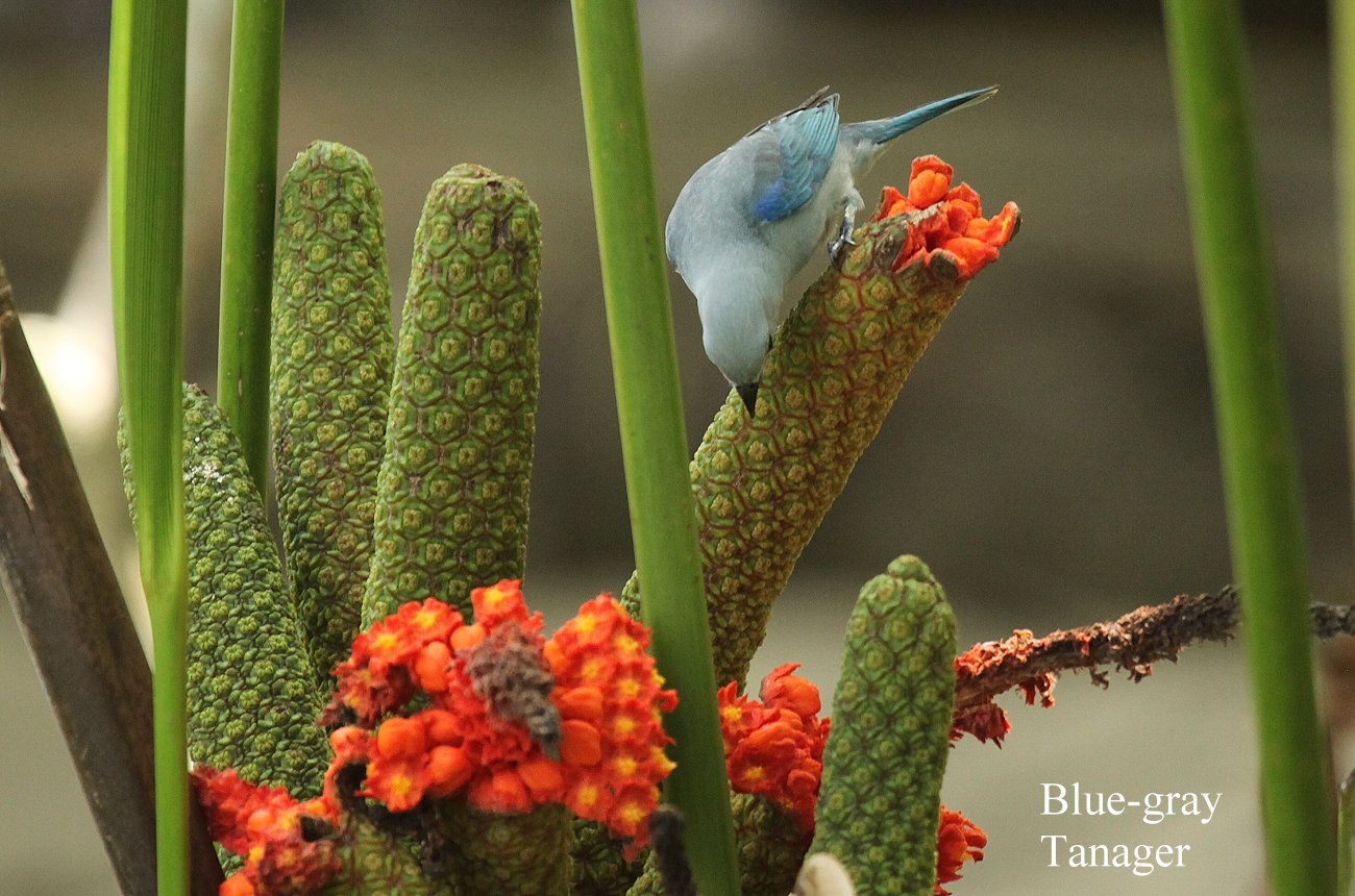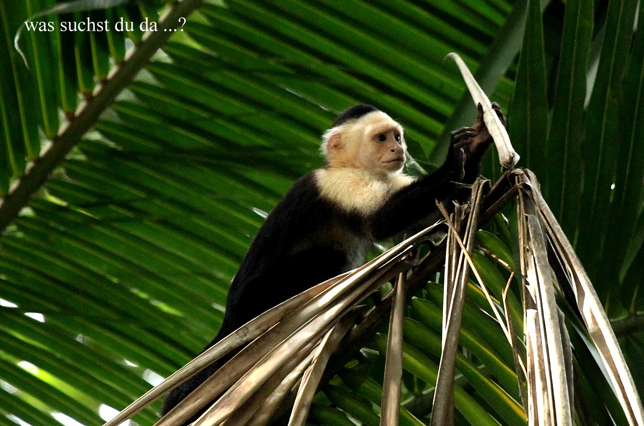 Wir blieben bis 9:45 h gemütlich sitzen. Hin und wieder flog ein Vögelchen kurz vorbei, Kolibris und einmal ein Blue-gray Tanager. Auch die Kapuziner-Äffchen tauchten wieder auf. |