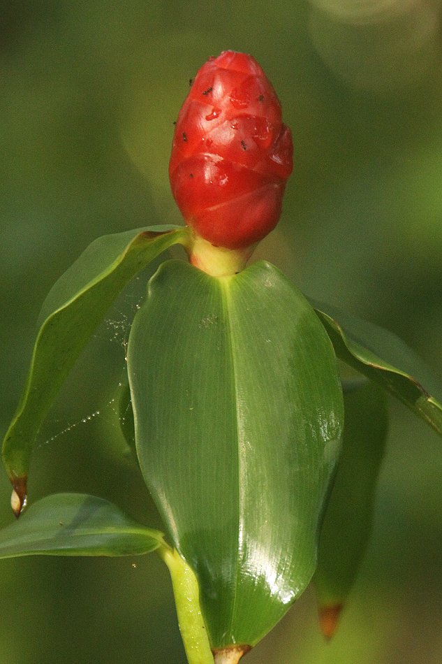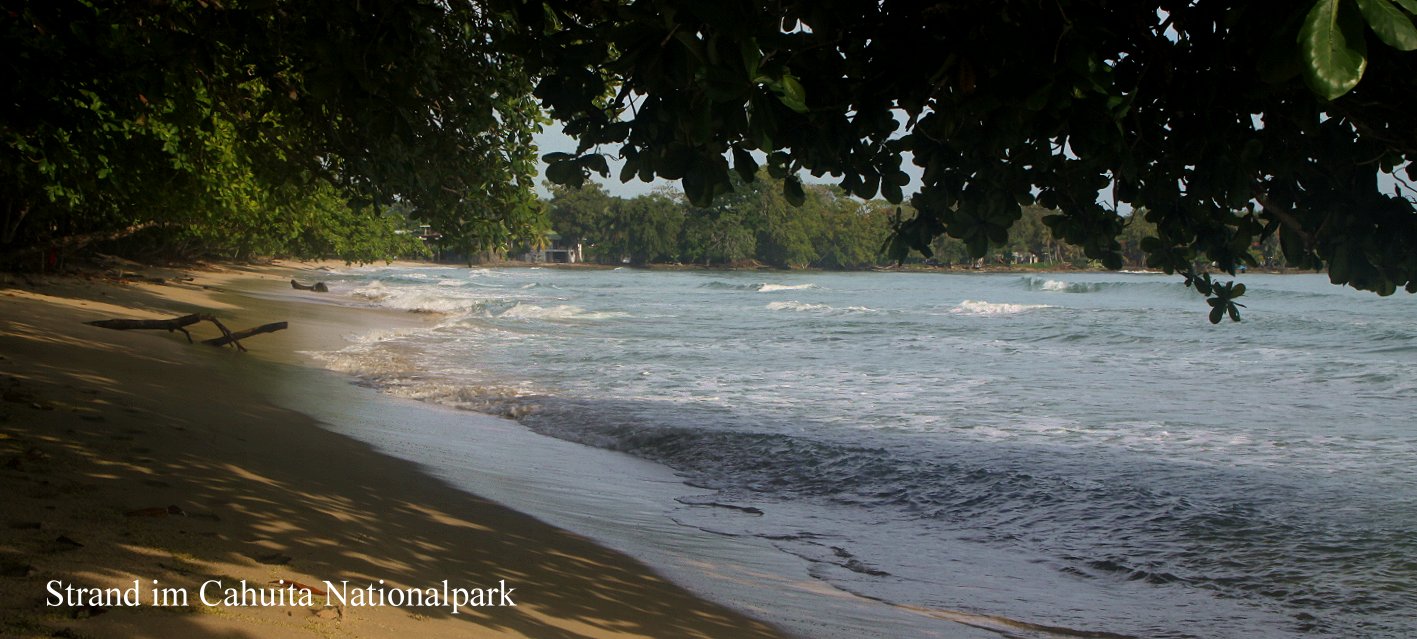 Wir entrichteten eine kleine Spende von 10,- $ und wanderten langsam durch den Dschungel, immer links unter den dichtbelaubten Bäumen die Brandung des Atlantiks im Blick. Zahlreiche Blattschneiderameisen kreuzten unseren Weg, teilweise große grüne Blattstücke, bzw. kleine Blütenblätter transportierend. Die Sonne schien vom blauen Himmel, der aber durch das dichte Blätterdach über uns verdeckt war, so dass trotz der enormen Luftfeuchtigkeit die Temperaturen einigermaßen erträglich waren. Ein Eichhörnchen hüpfte von Zweig zu Zweig. Immer wieder trafen wir auf tropische Pflanzen mit prächtigen farbigen Blüten. |
