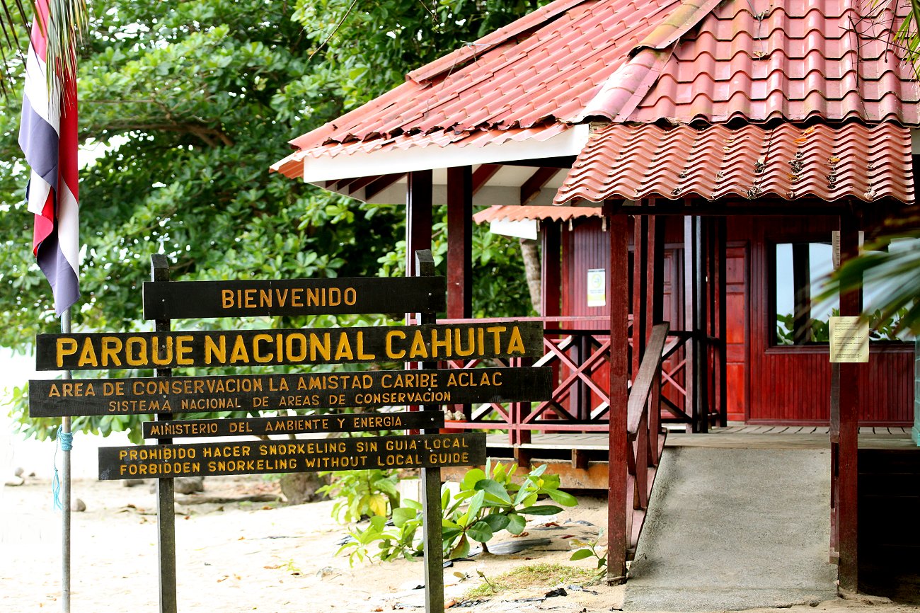 Wir fuhren zurück nach Cahuita zum anderen Parkeingang. Auf dem Wg dorthin entdeckte Tomoko einige grüne Amazonen in einiger Entfernung hoch in den Baumwipfeln, für Fotos leider zu weit. Am Parkeingang machten wir eine freiwillige Spende von 20,- $ und begaben uns auf den gleichen Trail wie gestern. |