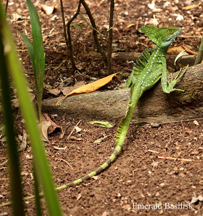 Tomoko konnte es gar nicht erwarten, nahm ihre Kamera und machte eine erste Runde in die nähere Umgebung. Ich war ziemlich verschwitzt, deshalb ging ich zunächst mal unter die Dusche, dann folgte ich auch. Als ich nach einer Viertelstunde zurück kam, saß Tomoko schon auf der Veranda und zeigte mir einige tolle Fotos von einem Emerald Basilisk. |