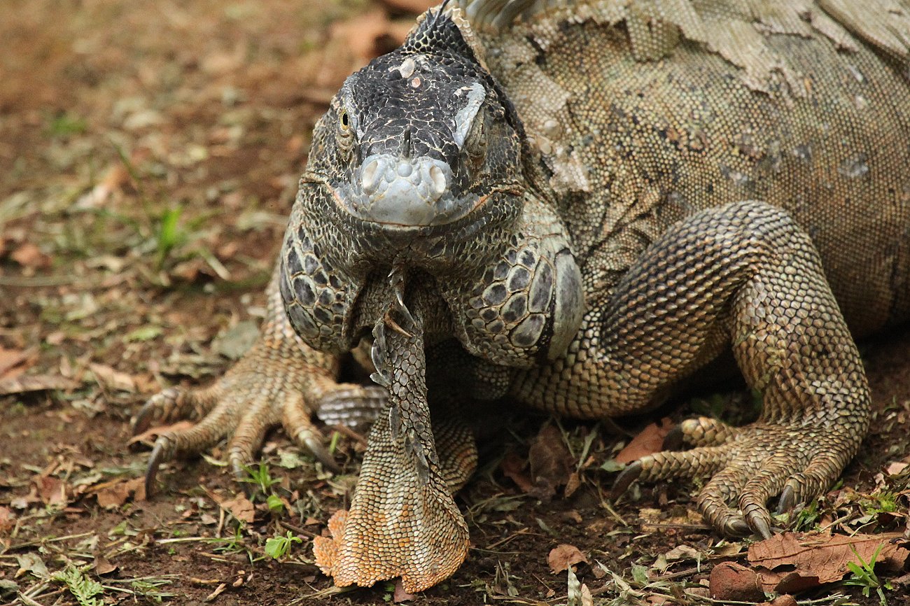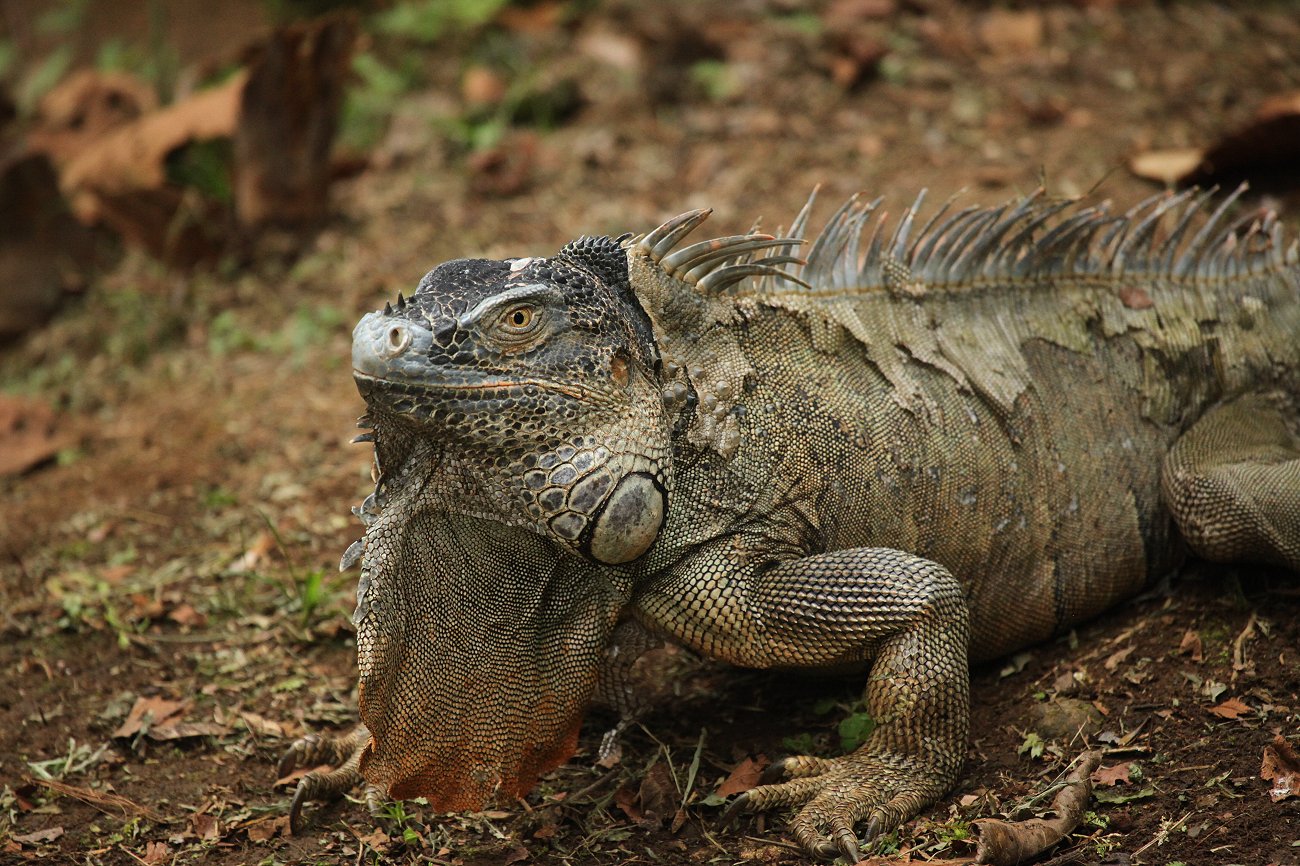 In der Nähe der Rezeption vor einer Brücke saß wieder eine große Echse (Iguana) mit großem zackigen Rücken. Diese riesigen Echsen sehen wirklich vorsintflutlich aus. |