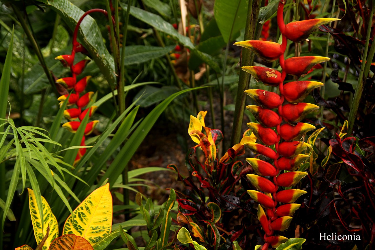 Zahlreiche tropische Pflanzen, meistens aus der Heliconia-Familie sowie der Familie der Ingwerpflanzen, zierten das Gelände. |