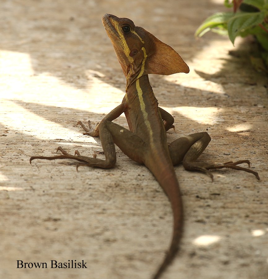 Am Eingang stand Michael, ein Einheimischer, der uns schon erwartet hatte und freundlich auf Englisch begrüßte. Wir erhielten ein sehr schönes Zimmer (Nr. 22). Auf dem Weg dahin liefen uns einige Basilisken (Brown Basilisk) über den Weg. Auf dem Bett lagen zwei weiße, mit roten Blüten geschmückte Handtücher, in Form zweier Schwäne. |