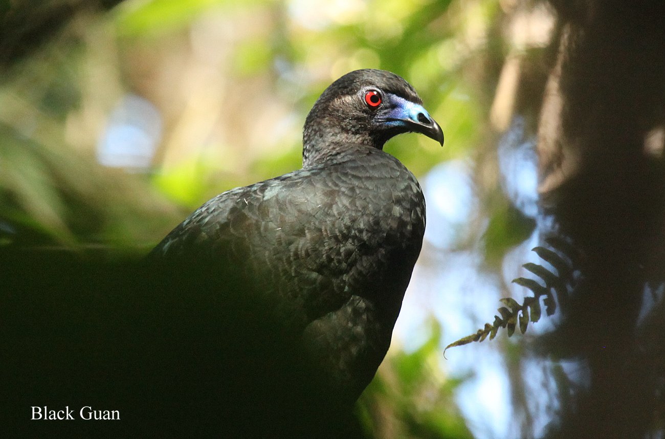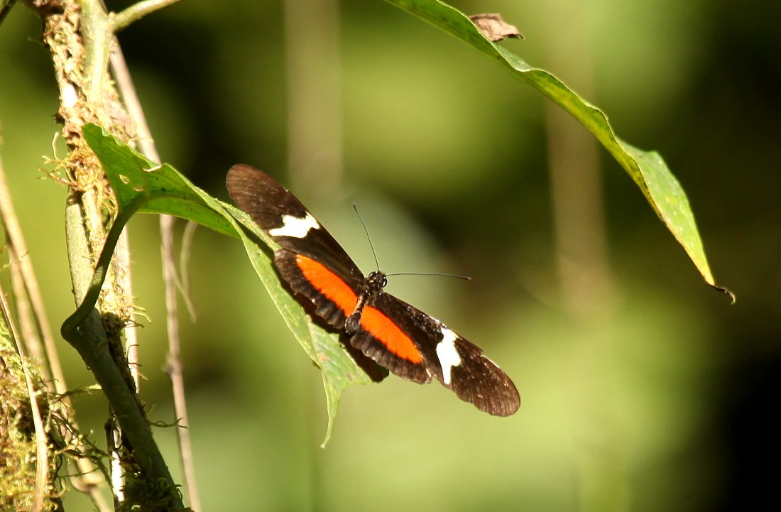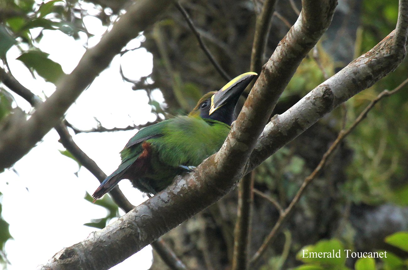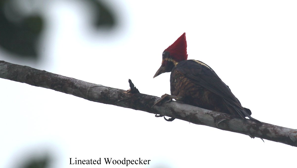 Auf einer kleinen Brücke im Wald machten wir halt. Plötzlich kam aus der Ferne ein Chestnut-mandibled Toucan herangeflogen, der von einigen kleineren Vögeln immer wieder attackiert und weggejagt wurde. Auch sahen wir einen Specht (Lineated Woodpecker) sowie 2 Golden-headed Tanagers und einen Blue-black Grassquit. Immer wieder hörten wir auch Papageien kreischen, einmal blieben sogar zwei in der Nähe auf einem Baum eine Weile sitzen, für ein gutes Foto leider zu weit. |