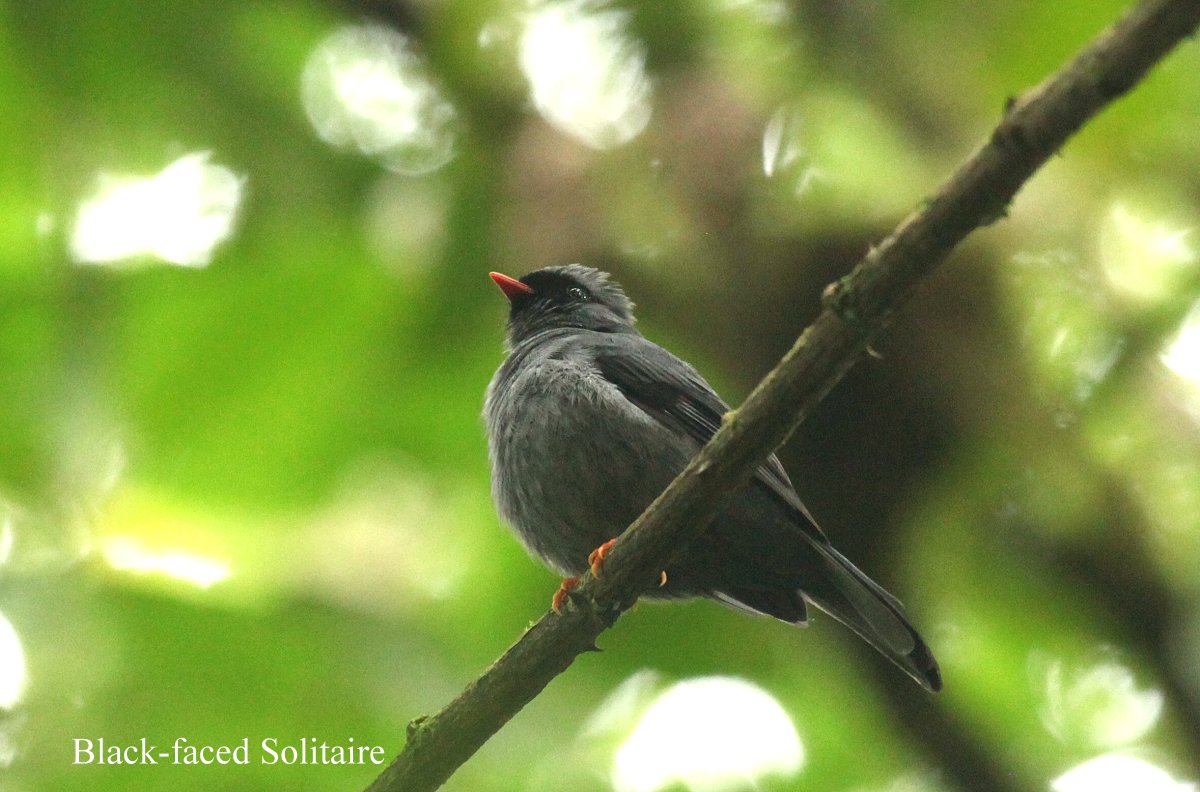 Wir hörten einige Male einen Quetzal rufen, doch er blieb uns leider verborgen. Bis 8:00 h hatte die Sonne geschienen, inzwischen hatten sich jedoch Nebelbänke über den Berg geschoben, so dass das Licht, was am Boden im dichten Dschungel sowieso nicht allzu hell ist, sich weiter verschlechterte. Als wir so saßen, kam eine Reisegruppe uns entgegen mit einem Führer, der ein Spektiv bei sich trug. Der Führer fragte mich, ob ich Bellbird oder Quetzal gesehen hätte, da es in der Nähe ein Nest des letzteren gäbe. Da ich verneinte, ging er mit seiner Gruppe 50 m weiter. Dort baute er sein Spektiv auf. Nach kurzem Suchen schien er das gefunden zu haben, was er suchte.
