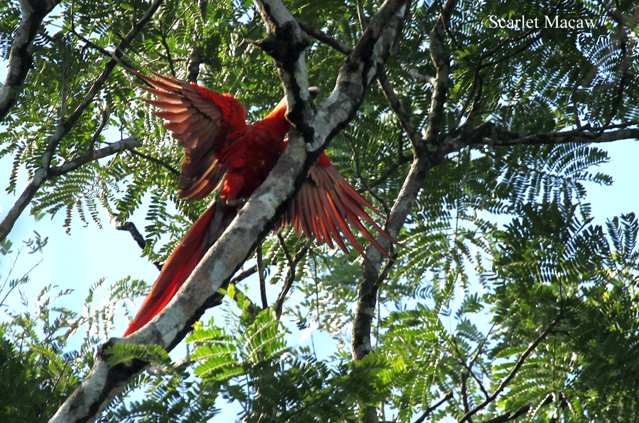Auf dem Rückweg konnten wir nochmals einige rote Aras (Scarlet Macaws) sehen und diesmal in besserem Licht fotografieren. |