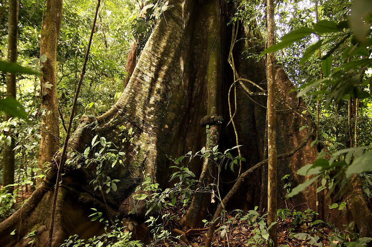 Weiter ging es durch den dichten Dschungel. Wir entdeckten einen wunderschönen Orange-collared Manakin. Während wir ihn fasziniert beobachteten, entdeckte Tomoko eine Raupe in meinem Bart... |
