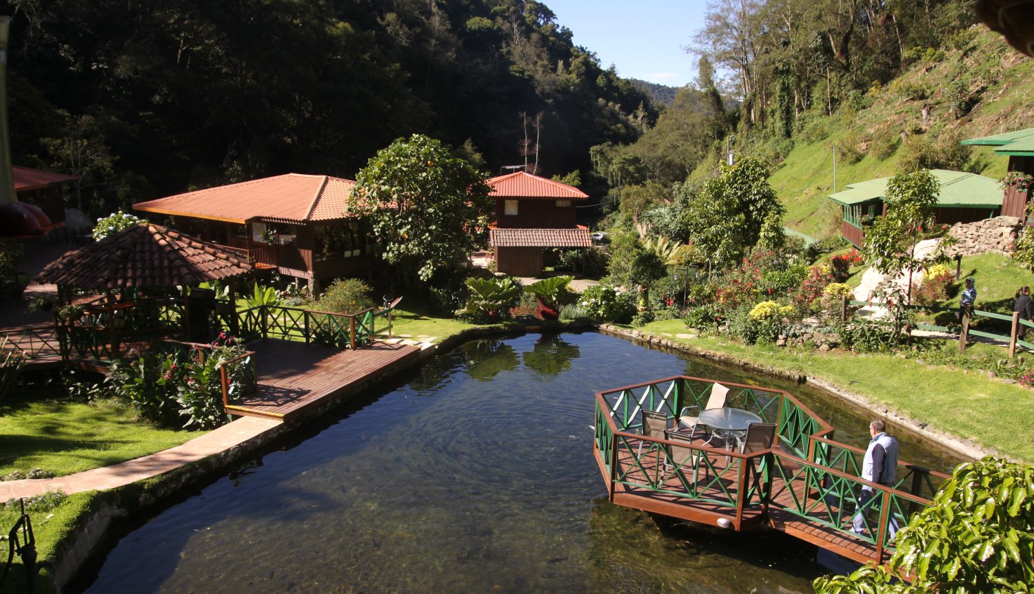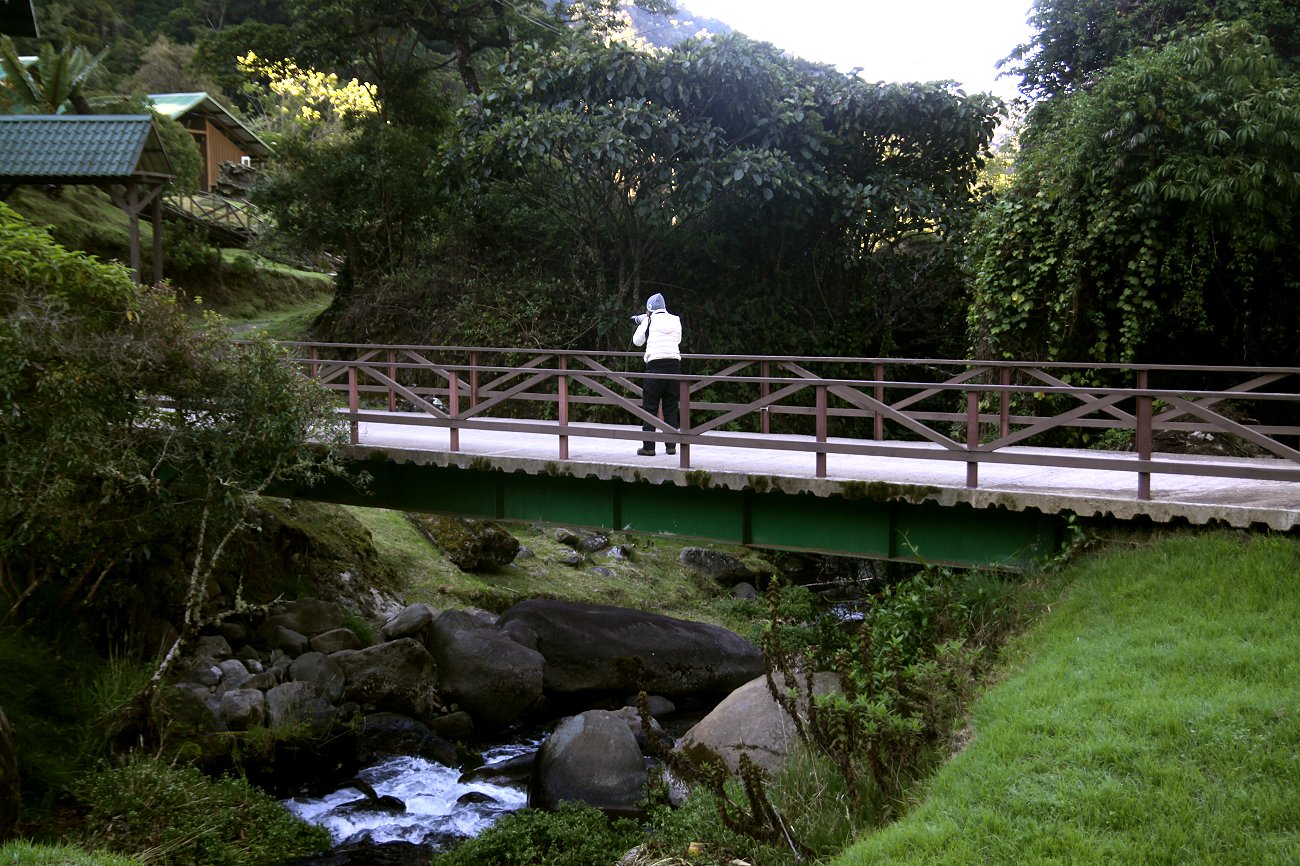 Bei der Einfahrt zur Lodge hielten wir kurz an, da einige Vögel herumflatterten, die wir von der Brücke über den Savegre River gut beobachten konnten. |