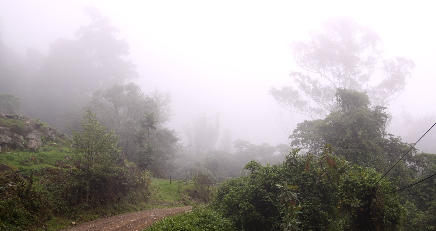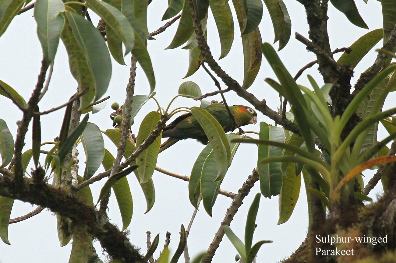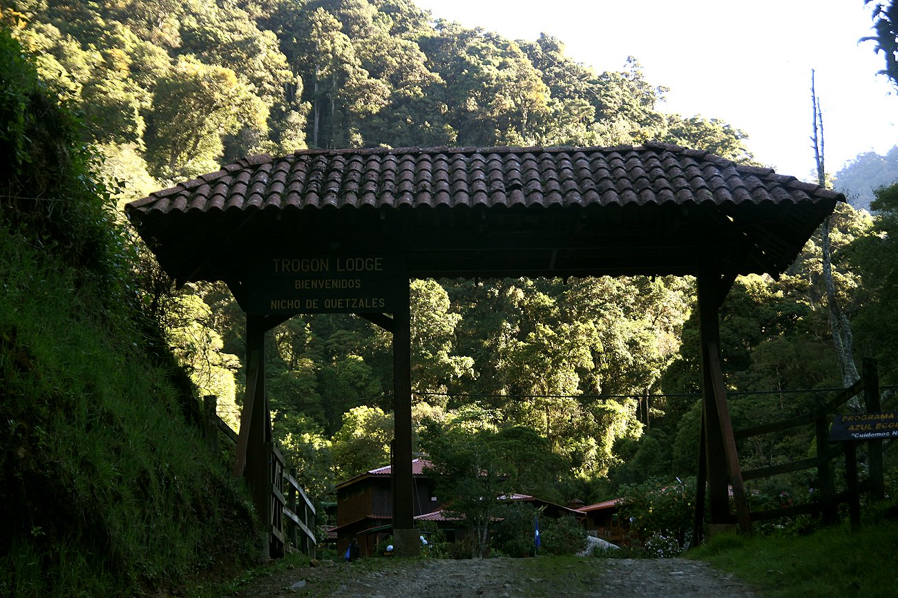 Es hatte sich in der letzten halben Stunde schon bewölkt und plötzlich ergoss sich ein heftiger Regenschauer über die Landschaft. Nachdem wir uns satt gegessen hatten, machten wir uns wieder auf den Rückweg. Tomoko nutzte die Gelegenheit zu einer heißen Dusche, die bei einer Zimmertemperatur von 17° sehr angenehm war. Ich schrieb weiter Tagebuch. Der Regen hörte im Laufe des Nachmittags wieder auf, doch es blieb etwas kühl. Am heutigen Sonntag sind einige Gäste abgereist, die wohl nur über das Wochenende hier waren. Mal sehen ob es heute Abend wieder ein Buffet gibt. Gegen 16:00 h fuhren wir nochmal zu der Stelle, wo heute morgen der Quetzal war. Die grauen Wolken hingen in Fetzen tief über dem Dschungel. Vom Quetzal keine Spur, dafür sahen wir wieder einige für uns neue Vögel. |