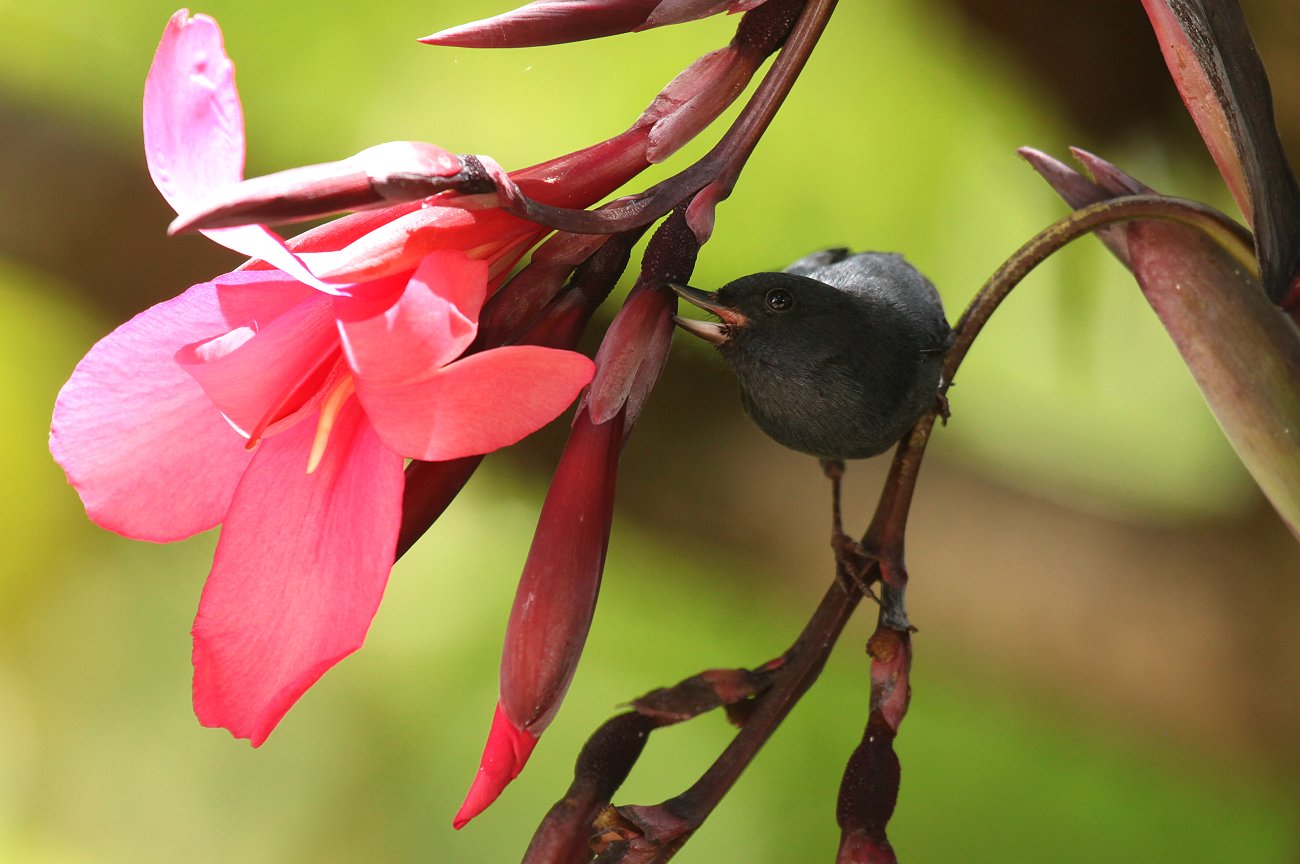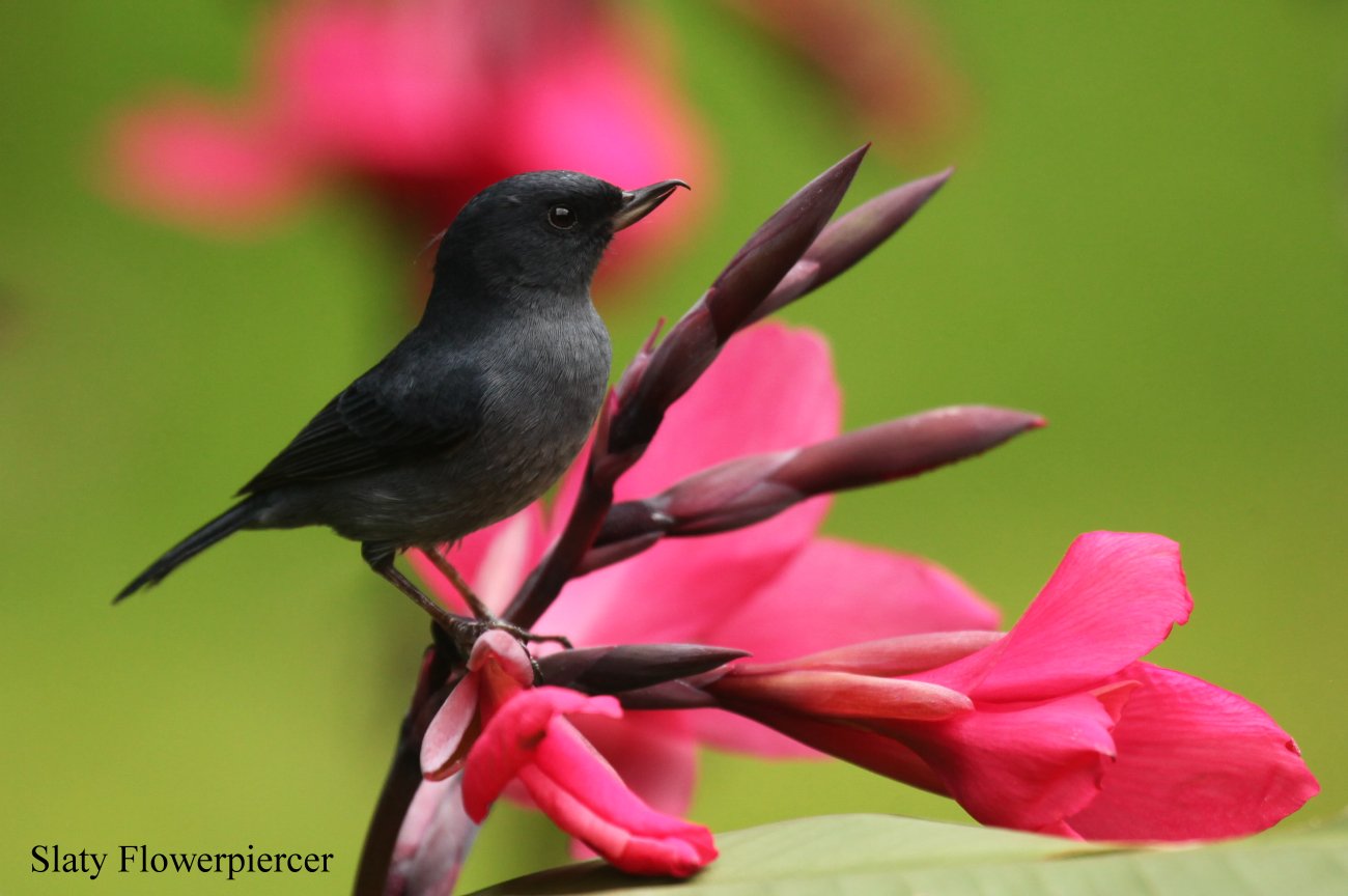 Obwohl wir nach dem reichhaltigen Frühstück eigentlich aufs Mittagessen verzichten wollten, verspürten wir gegen 12:30 h doch etwas Hunger. Also nahmen wir das Auto und fuhren nochmal ein Stück den Weg hinunter bis zu einem kleinen Restaurant „Kawaha“, wo Tomoko ein vegetarisches Sandwich und ich ein Casado, ein typisches Gericht in Costa Rica, bestellte. Dazu gab es einen leckeren Tamarind-Saft. Es ist erstaunlich, wie lecker hier in Costa Rica alle meist selbst hergestellten Obstsäfte schmecken. Beim Essen sprang Tomoko immer wieder mit ihrer Kamera auf, da sich einige hübsche Vögel zeigten (u.a. Tufted Flycatcher, Acorn Woodpecker, Sulphur-winged Parakeet, Spot-crowned Woodcreeper und Flame-colored Tanager beim Baden). |
