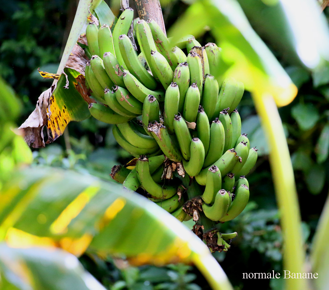 Gleich daneben wuchsen verschiedene Bananensorten, deren Namen uns Adrián erklärte. Dazwischen tauchte plötzlich ein Pizote (Nasenbär) auf. |