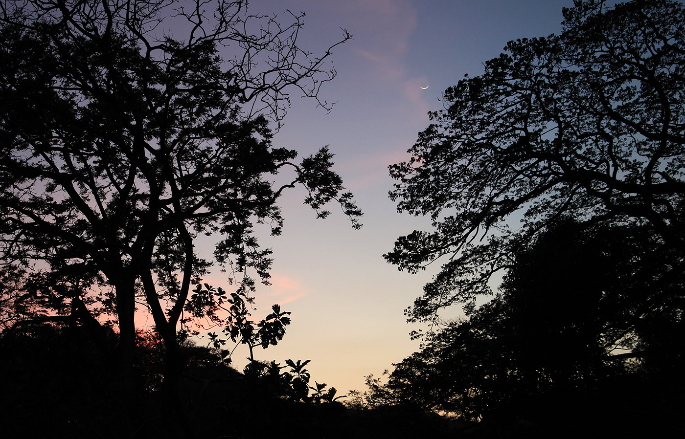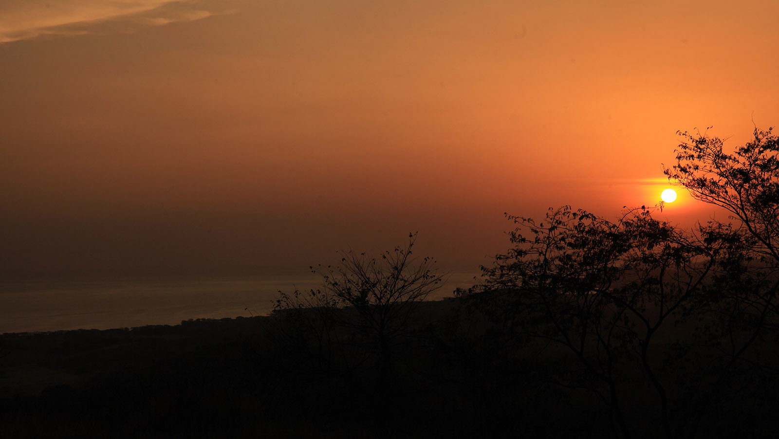 Hier in den Tropen geht die Sonne sehr schnell unter und die Dunkelheit breitet sich schnell aus. Wir blieben noch, bis die Sonne fast den Horizont erreicht hatte. |