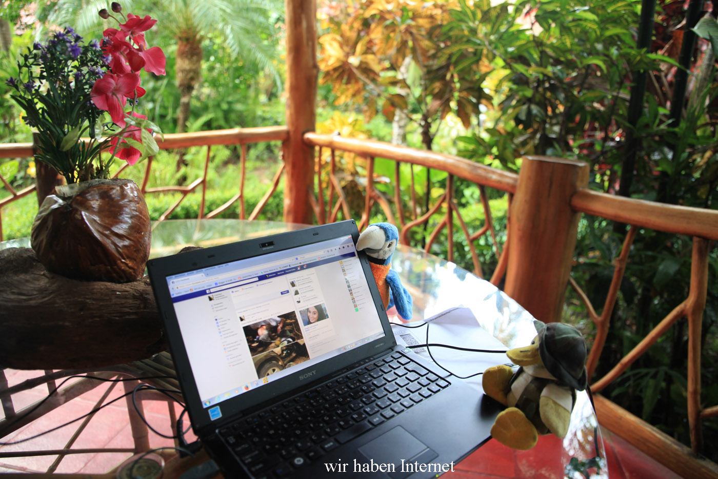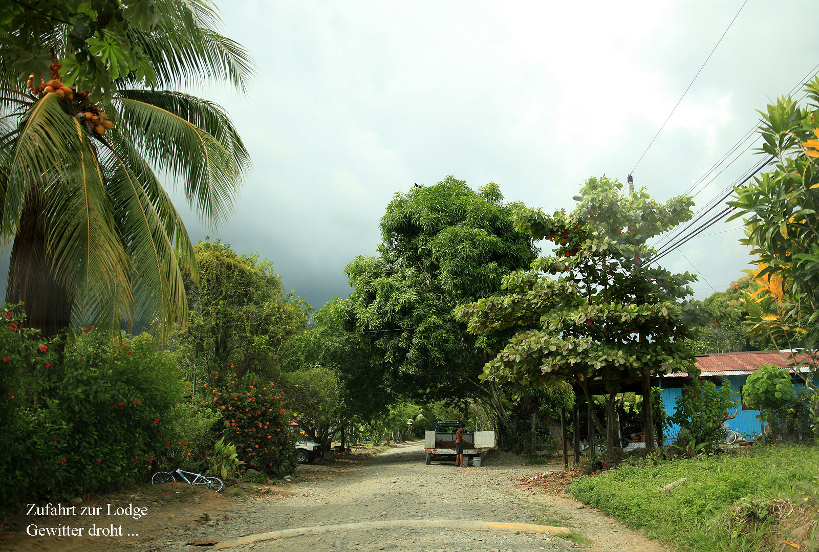 Gegen 14:30 h erreichten wir wieder die La Palapa EcoLodge. Ich machte ein paar Fotos von einigen Motiven in der näheren Umgebung unseres Bungalows. Dann fing ich schon mal mit meinem Tagesbericht an, als ein erster Donner ein Gewitter ankündigte. |