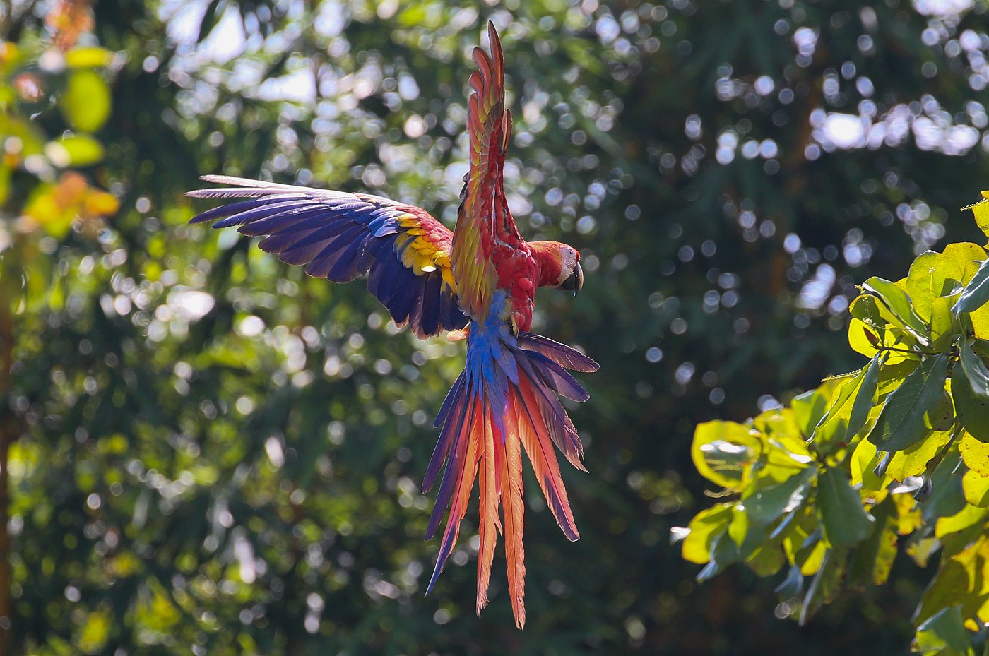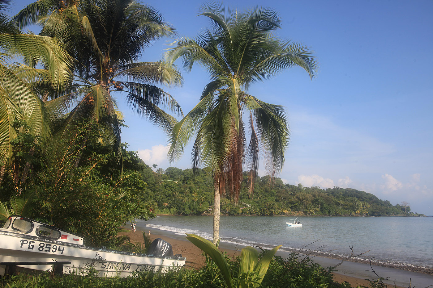 Das blaue Wasser des Pazifiks bildete einen wunderschönen Kontrast zu den grünen dichtbelaubten Bäumen und den farbenprächtigen Aras. Mit steigender Sonne am blauen Himmel stieg die Temperatur schnell auf über 30° an. |