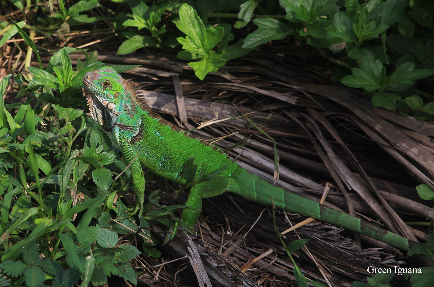 Wir versuchten möglichst im Schatten zu bleiben, was aber nicht immer möglich war, so dass mein T-Shirt in kürzester Zeit patschnass war. Ich entdeckte einen leuchtend grünen Iguana, der von einer Kokuspalme kletterte und begann die saftigen Pflanzen am Boden zu fressen. Tomoko konnte sich gar nicht satt sehen an den Papageien und fotografierte in einem fort. Ich nahm derweil mein Stühlchen aus dem Auto, setzte mich unter eine Palme und ließ meine Blicke über das Meer in die Ferne schweifen. |
