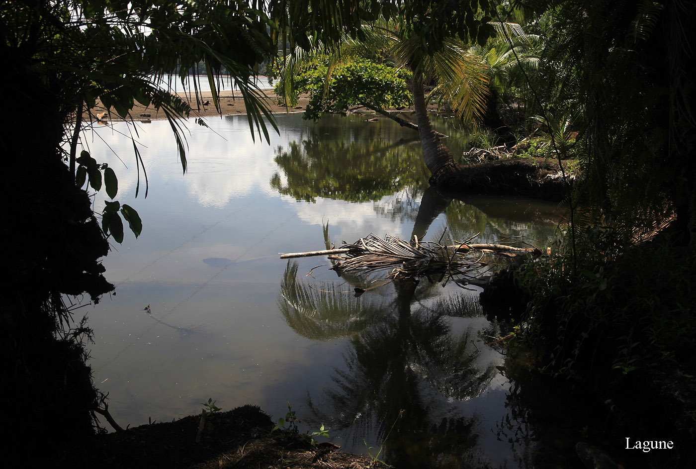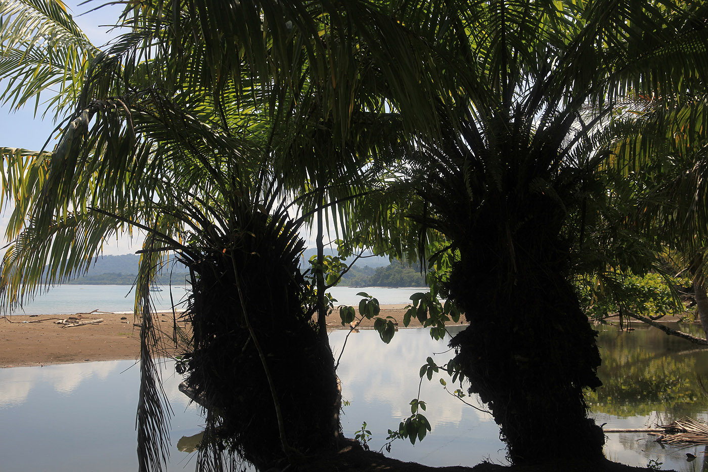 Irgendwann machten wir doch ein paar Schritte durch die heiße Sonne am Strand entlang bis zum Ende. Dabei mussten wir einen kleinen Bach überspringen. Man könnte den sich anschließenden Trail etliche km weiter durch den Dschungel wandern. Darauf verzichteten wir aber wegen der enormen Hitze. |