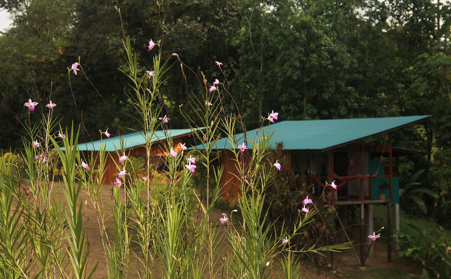 Da es am Strand zu heiß war und außerdem sich keine Papageien zeigten, fuhren wir zu unserer Finca zurück und verbrachten den weiteren Nachmittag faul in den Hängematten liegend. Ich machte zwischendurch mal eine kleine Runde übers Gelände und fotografierte einige prächtige Blüten, doch es war zu heiß um länger herumzulaufen. |