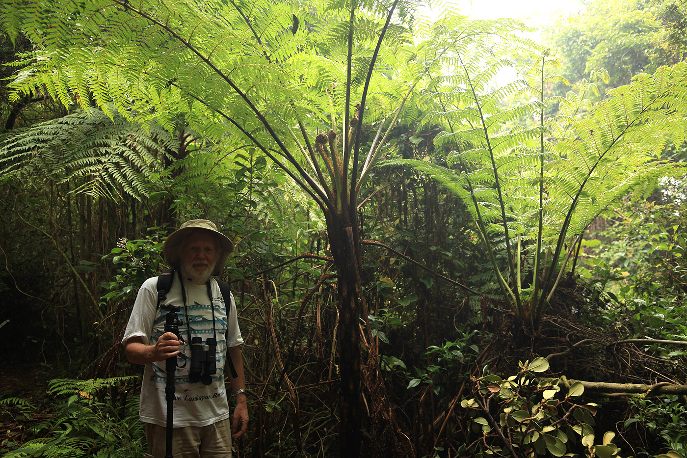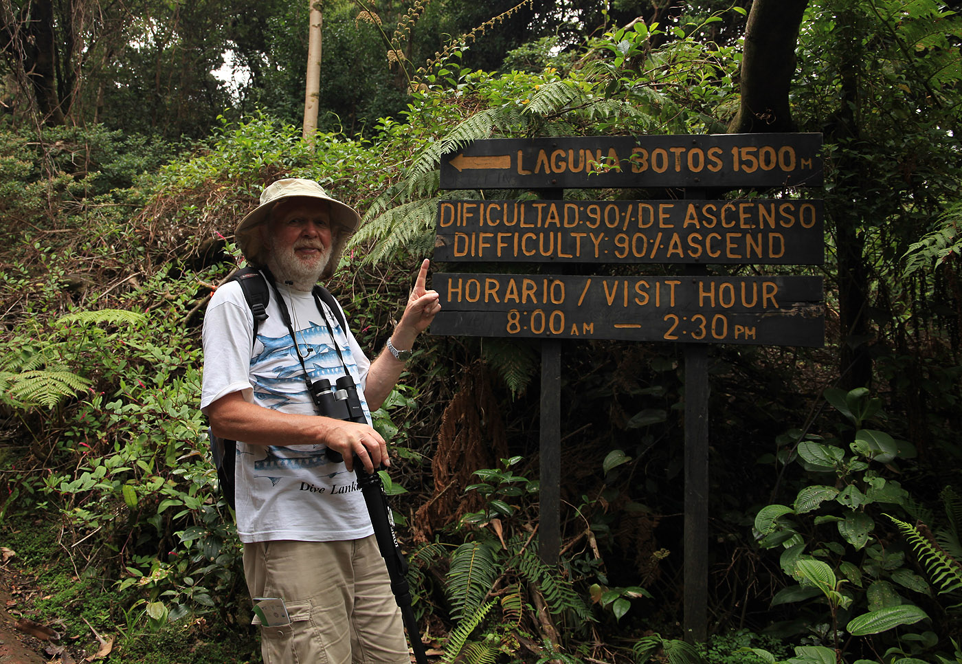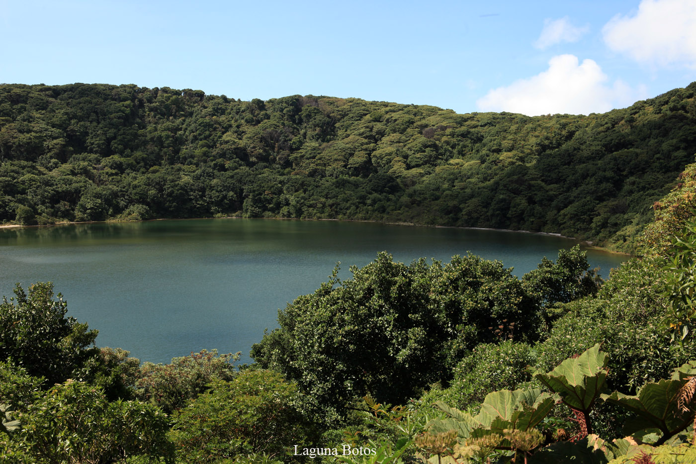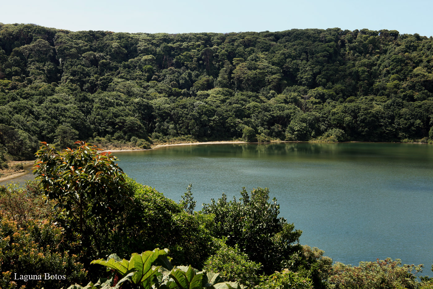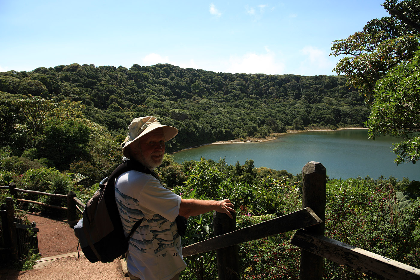 Es gab noch einen 800 m langen Trail zur Laguna Botos, einem alten Kratersee, der jetzt mit Regenwasser gefüllt ist und im Gegensatz zum Hauptkrater mit dichtem grünen Wald umgeben ist. Der steil ansteigende Trail wirkte wie ein dunkler Tunnel, so dicht stand das Unterholz. Die Lagune lag dann wieder in schönstem Sonnenlicht. |