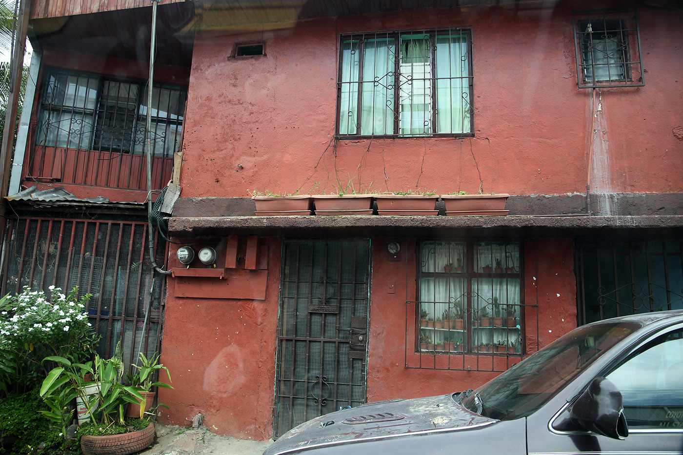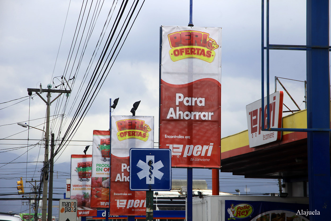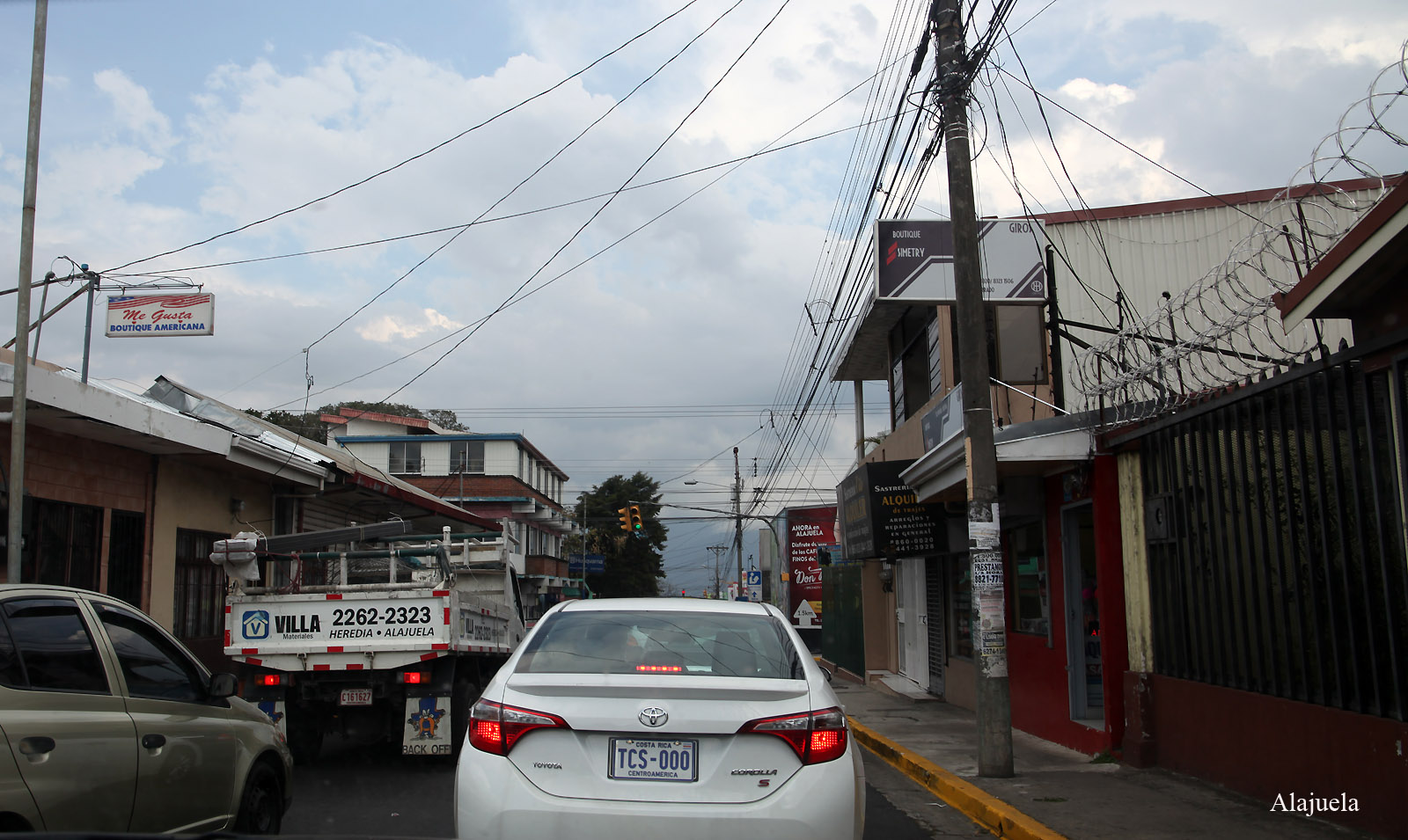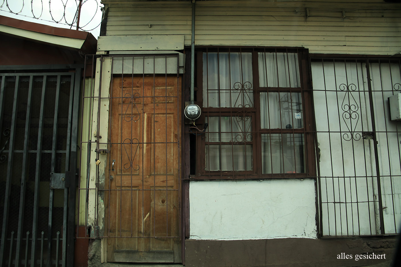 In einem Supermarkt kaufte Tomoko noch Avocados und Bananen-Chips, sowie ein Eis für uns beide, worüber sich unsere Bären sehr freuten. Nun ging es wieder zurück Richtung Hotel. Wir fuhren nach Anweisung unseres GPS eine andere Strecke als heute morgen, die uns mitten durch Alajuela führte, eine etwas trostlose große Stadt mit sehr schmalen Straßen und viel Verkehr. Uns fiel auf, dass fast alle Häuser mit starken Gittern und Stacheldraht gesichert waren. |