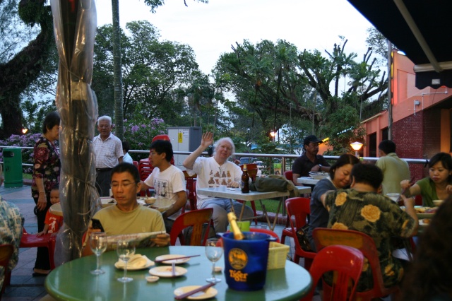 Heute endlich der Start zu unserer 3½ - wöchigen Reise über Singapur nach Malaysia. Der Abflug von Stuttgart nach Amsterdam mit dem KLM-Cityhopper erfolgte pünktlich um 17:35 h. Nach ca. 1h 20' landeten wir. Beim Einsteigen in den Flughafenbus kam mir mein Rucksack so merkwürdig leicht vor. Beim hastigen Öffnen erschrak ich dann sehr, ich Dummkopf hatte bei der Sicherheitskontrolle in Stuttgart doch tatsächlich vergessen, mein Notebook wieder einzupacken!! So was blödes... Ich rief sofort das Fundbüro am Stuttgarter Flughafen an, aber da war noch nichts abgegeben worden. Na ja, da kann man jetzt erstmal nichts machen. Wir wechselten zum Gate nach Singapur, wo dann pünktlich um 21:10 h die Boeing 777 startete. Der 12½- stündige Flug verlief reibungslos. Tomoko schlief viel, während ich wie immer Mühe hatte, irgendwann einmal für eine Stunde zu schlafen. Pünktlich um 16:30 h Ortszeit ( inzwischen war 7.März) landeten wir auf dem CHANGI-AIRPORT in Singapur. Die Einreise ging ziemlich zügig voran. Dann nahmen wir ein Taxi, das uns in ca. 20' zum Changi-Village-Hotel brachte, ein sehr schön am Meer in ruhiger Lage befindliches Hotel. Wir haben dieses Hotel bei unserem Zwischenstopp nach Australien letztes Jahr gesehen und unsere Erwartungen wurden nicht enttäuscht. Das Hotel ist sauber, die Zimmer geräumig, das Personal äußerst freundlich und hilfsbereit. Wir hatten bei agoda.de im Internet gebucht für rund 55 € pro Nacht ohne Frühstück. Es gibt Internetzugang im Zimmer (LAN-Kabel vorhanden), allerdings nicht kostenlos. Für uns wichtig war die Lage nahe der Fähre zur Insel Pulau Ubin, die wir am nächsten Tag besuchen wollten. Nachdem wir unser Zimmer für die nächsten 3 Nächte bezogen hatten, verspürten wir Hunger. |
