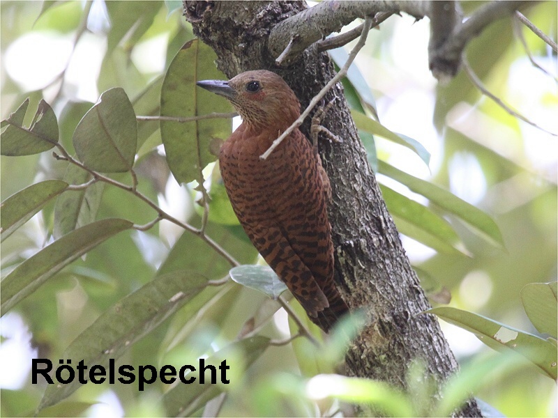 Pulau Ubin ist eine kleine Insel zwischen Singapur und Malaysia. Sie gehört zu Singapur, ist aber von tropischem Regenwald bedeckt und somit landschaftlich sehr reizvoll. Bei der Ankunft erwartete uns ein kleines Dorf, das hauptsächlich aus Fahrradvermietungen zu bestehen schien. Da heute Sonntag ist, waren ziemlich viele Leute unterwegs, hauptsächlich Einwohner aus Singapur, die das schöne Wetter für einen Ausflug nutzten. Wir mieteten uns 2 Fahrräder und fuhren in östliche Richtung los, bis wir nach ungefähr 5 km das östliche Ende der Insel erreichten. Hier wanderten wir auf einem Rundweg durch die Mangroven. Mindestens 10 Hähne der hier vorkommenden Art „Bankivahuhn“ , ein wilder Vorfahre unseres heutigen Haushuhns, flogen über uns hinweg. Diese Tiere leben im Dschungel seit ca. 4000 Jahren. Des weiteren sahen wir noch folgende Vögel: Rötelspecht, Grünrücken-Nektarvogel, Halsbandliest, Dajaldrossel, Purpurkehl-Nektarvogel, Schwarzbauchnonne. |