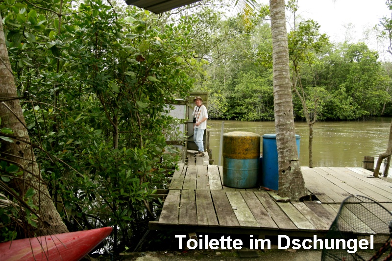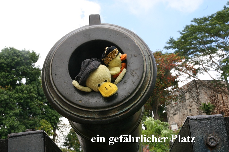 Wir suchten Schutz in einer kleinen Hütte am Wegesrand und warteten erst mal einige Zeit.Doch es regnete kräftig weiter. Nach einiger Wartezeit wurden wir ungeduldig. Da es keine Anzeichen auf Besserung gab, packten wir unsere Regenschirme aus und fuhren zurück zur Bootsanlegestelle . Es gab nicht genug Leute für eine Rückfahrt. Die Kapitäne warten immer, bis ein Boot mit 12 Personen voll ist. Da wir nur 5 waren, beschlossen wir, den Gesamtfahrpreis von 30 S$ für ein Boot gemeinsam aufzubringen. Also zahlte jeder 6S$ anstatt 2,50 S$, und wir konnten endlich losfahren. Leider vergaß ich meinen schönen Entenschirm bei der Abfahrt. In Singapur angekommen, aßen wir in einem kleinen chinesischen Restaurant. Am Abend experimentierte ich viel mit unserem neuen Netbook und surfte im Internet. Morgen soll es dann nach Malaysia gehen, wir sind gespannt….. |