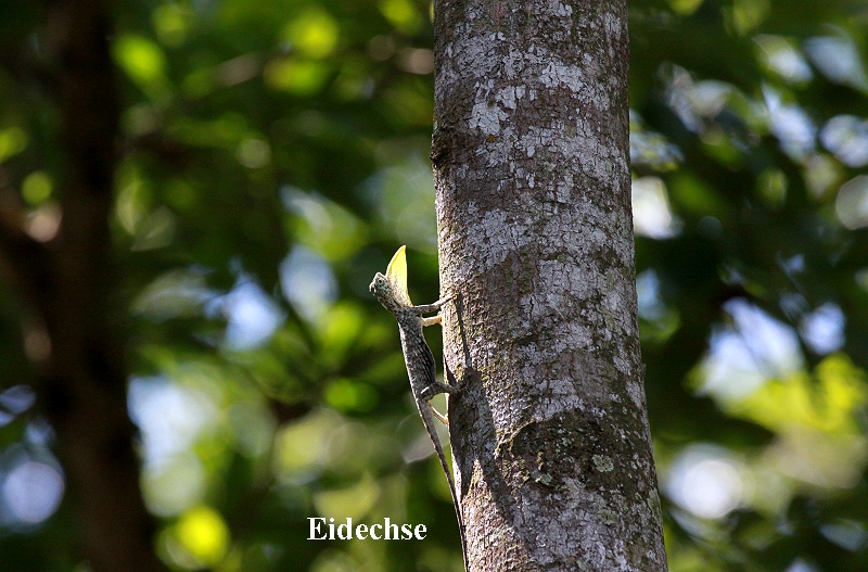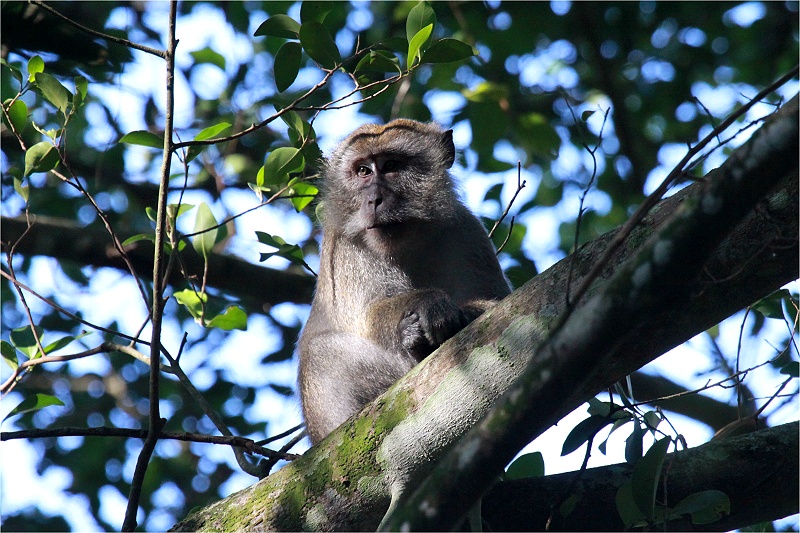 Der Park selbst ist eigentlich ein wilder Urwald, der langsam in Mangrovendickicht übergeht. Ein ca. 3,5km langer Trail führt durch das Gelände. Wir wurden gleich von einem Schwarm Moskitos begrüßt. Mehrere Langschwanzmakaken kletterten durch die Bäume und beäugten uns neugierig. Wir wanderten ca. 3 Stunden durch die Landschaft. Viele Vögel waren zu sehen, ein paar Eichhörnchen sowie ein riesiger Waran (ca. 2m lang). Je weiter wir Richtung Meer vorankamen, desto sumpfiger wurde das Gelände. |