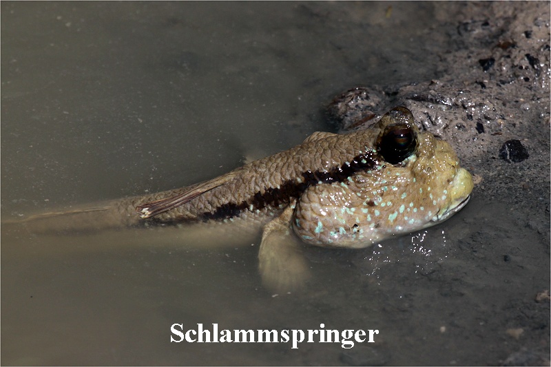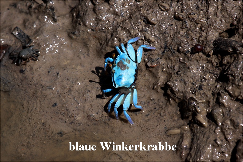Wir konnten kleine hellblaue Krebse sowie Schlammspringer beobachten. Nach ca. 2 Stunden machte sich bei mir die enorme Hitze (über 30°) sowie die hohe Luftfeuchtigkeit bemerkbar. Unsere Wasservorräte schrumpften schneller als uns lieb war. Mit den letzten Tropfen erreichten wir schließlich ziemlich erschöpft unseren Ausgangspunkt. |