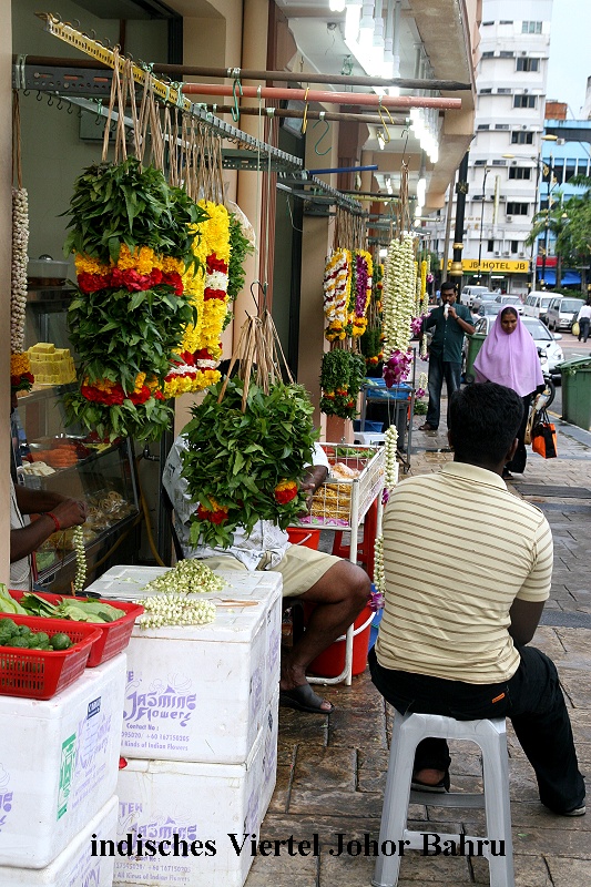 indisch-chinesisches Viertel zurück zum Hotel. Hier auf dem Zimmer schauten wir noch ein wenig Internet (kostenlos) und tranken ein Bier. Ich rief noch den Taxifahrer an, der uns vor 3 Wochen von Singapur hierher gefahren hatte und verabredete mit ihm für morgen 12:00 h den Rücktransport nach Singapur. Gegen 22:00 h gingen wir dann schlafen. |