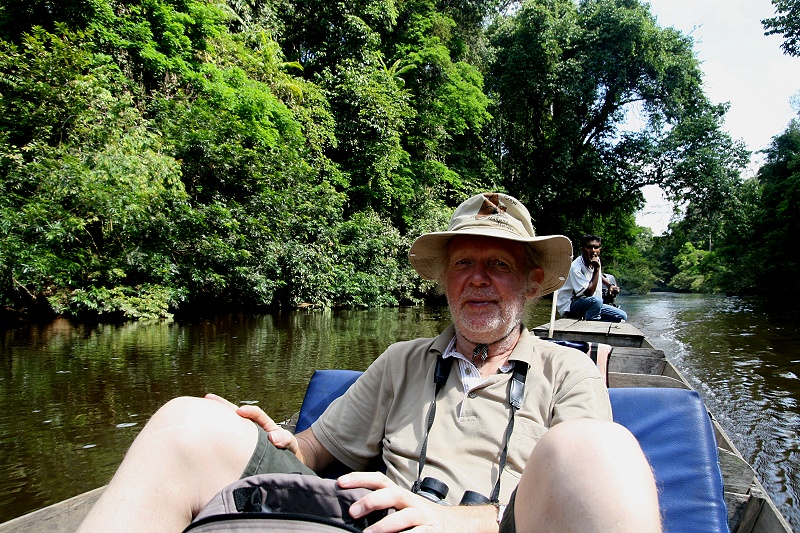 Die Klimaanlage ließ sich angenehm regeln, so dass wir nach gutem Schlaf gegen 7:30 h erholt aufwachten. Nach dem Frühstück ging es wieder über den Fluss in den Nationalpark. Wir gingen am Chalet von Keith und Pat vorbei. Pat saß auf der Terrasse und war natürlich sehr überrascht, uns wieder zu sehen. Keith war heute früh alleine aufgebrochen in den Dschungel, und Pat wollte den Vormittag in Ruhe verbringen. |